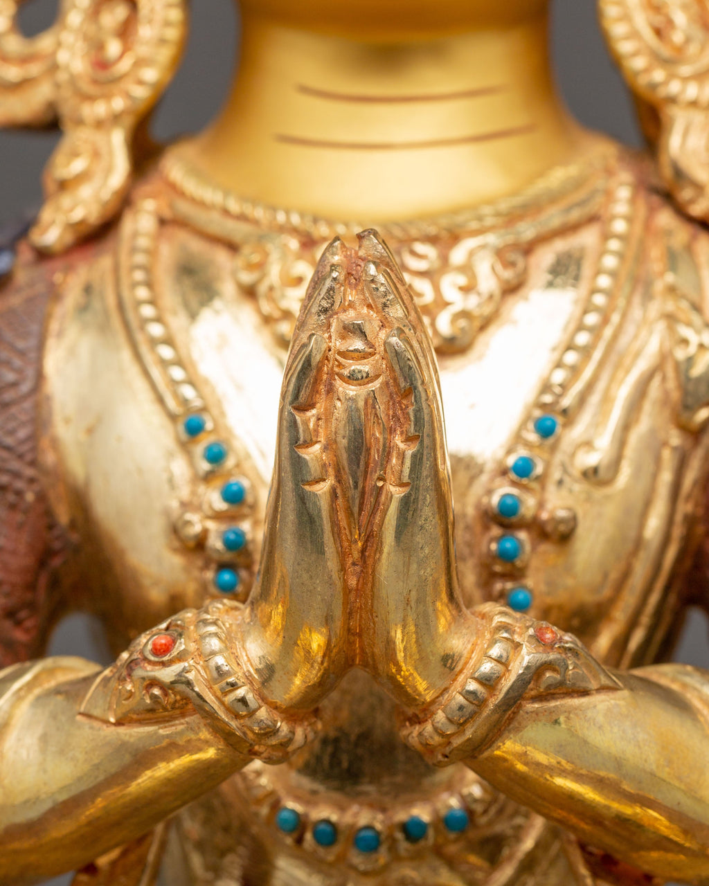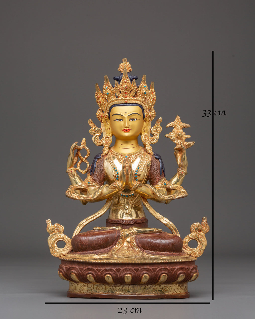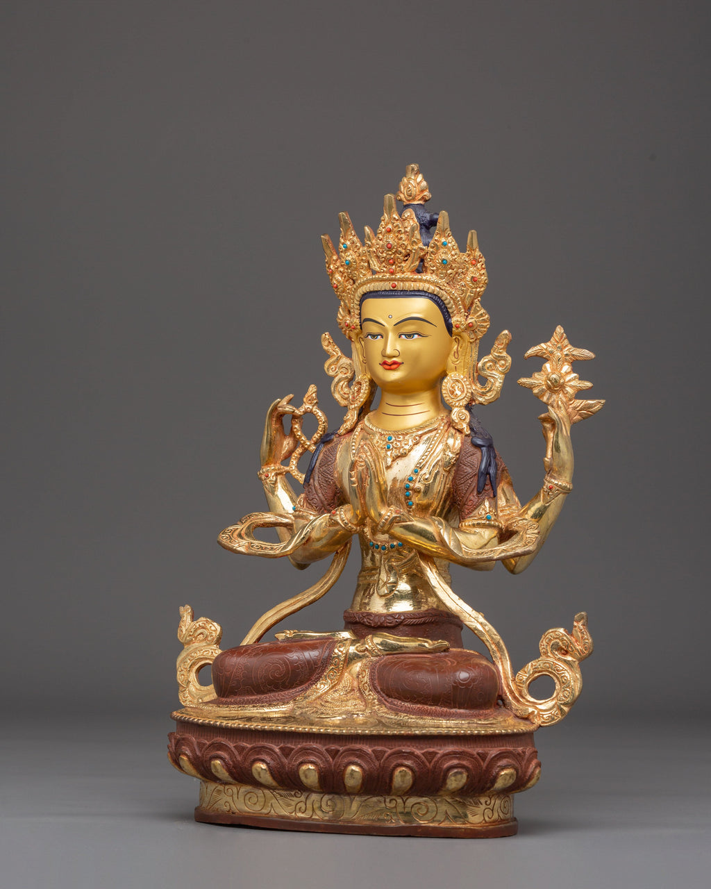 Compassion Buddha Sculpture | Gold Plated Chenrezig Decor