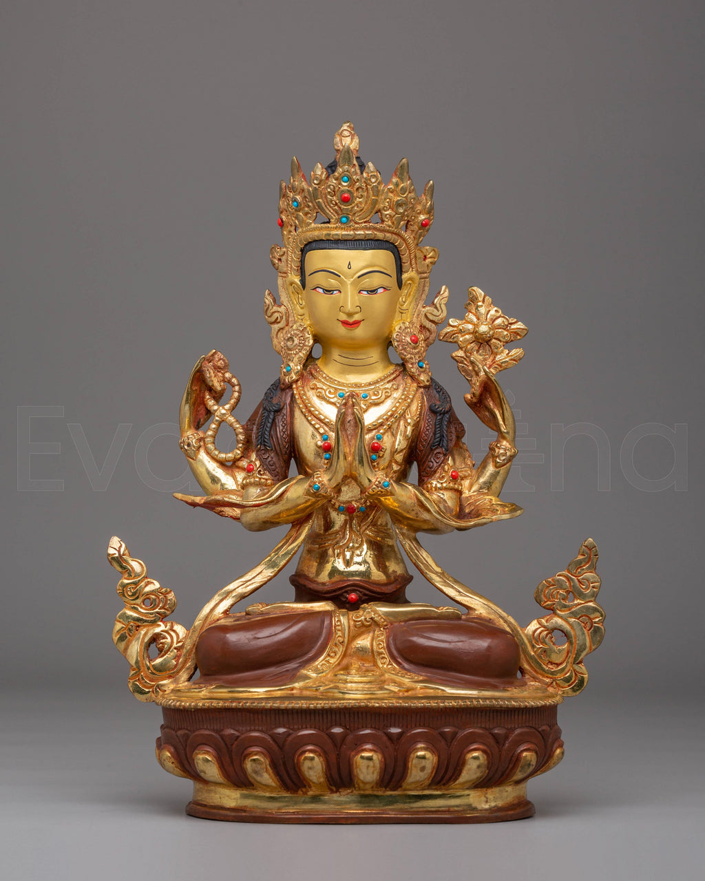 Ideal for those seeking to invite compassion and peace into their home, the Sacred Bodhisattva Chenrezig Statue serves as a powerful symbol of spiritual protection. Its exquisite craftsmanship and meaningful design make it an ideal piece for meditation, prayer, or as a reminder of the boundless love and compassion that Chenrezig offers to all beings.
