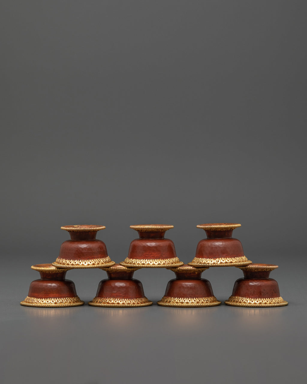 Each bowl is crafted with a base of 4.5cm and an inner depth of 3.5cm, providing much space for traditional offerings such as water, fruit, or rice. The lightweight design ensures easy handling, while the set’s simple yet elegant aesthetic brings a peaceful and sacred energy to your spiritual practice. Whether used for daily offerings, rituals, or as a decorative piece in your altar or meditation space, these bowls serve as a beautiful and meaningful tool for connecting with divine blessings and fostering spiritual growth.