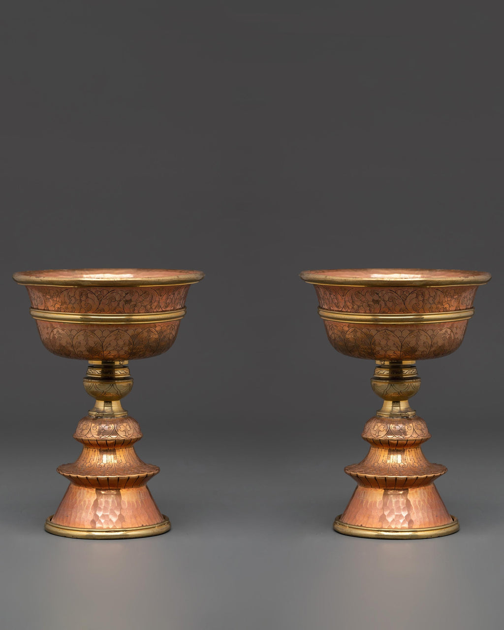 The elegant copper and gold Coating add a touch of sacred beauty to your altar or spiritual space. These butter lamps hold great spiritual significance and are often used in Tibetan Buddhist rituals to offer light, peace, and positive energy. Whether you're performing rituals or simply seeking a meaningful spiritual decoration, this butter lamp set will enhance your practice and home environment.