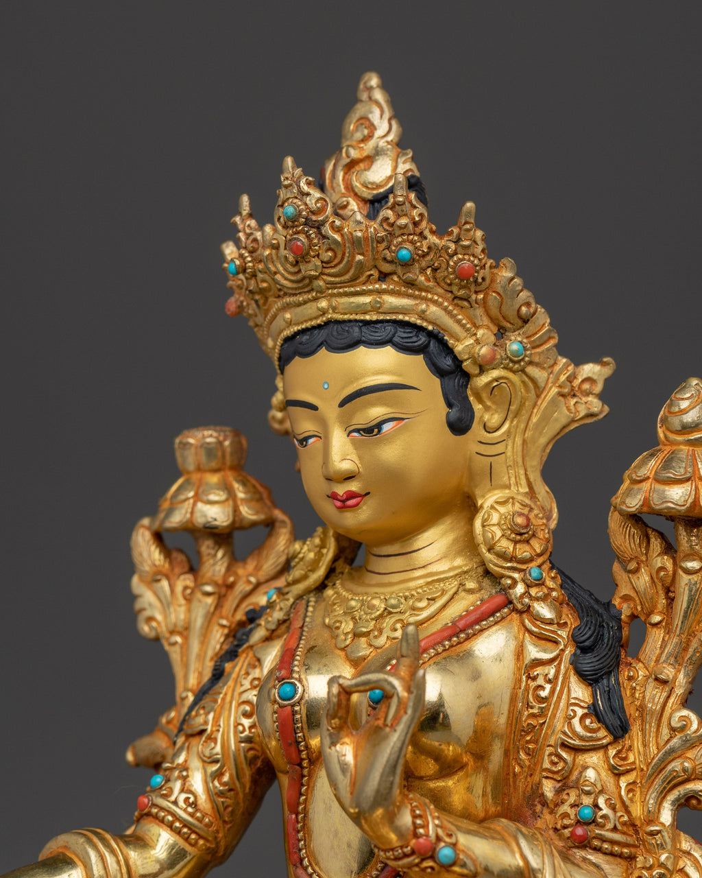Handmade Sacred Feminine Artwork of Green Tara | Buddhist Sculpture
