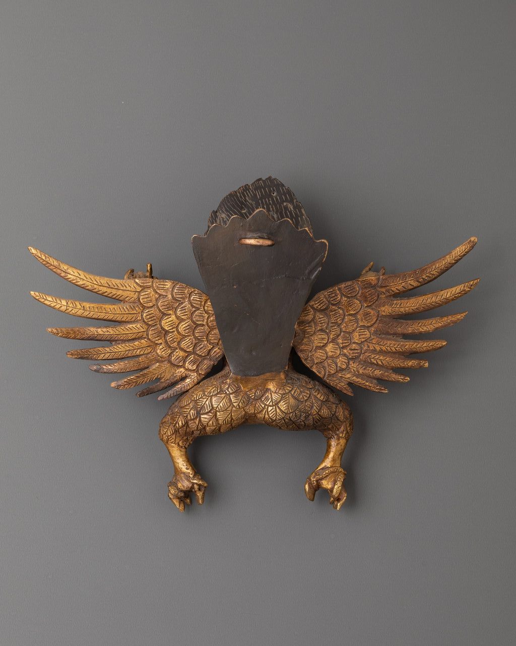 Enhance your sacred space with this intricately crafted Garuda decorative wall art, inspired by the revered mythological bird from Hindu and Buddhist traditions. Known as the mount of Lord Vishnu, Garuda symbolizes power, protection, and spiritual victory. This sculpture is made of copper with a gold-plated finish, bringing divine energy and detailed artistry into any altar, prayer room, or temple wall.