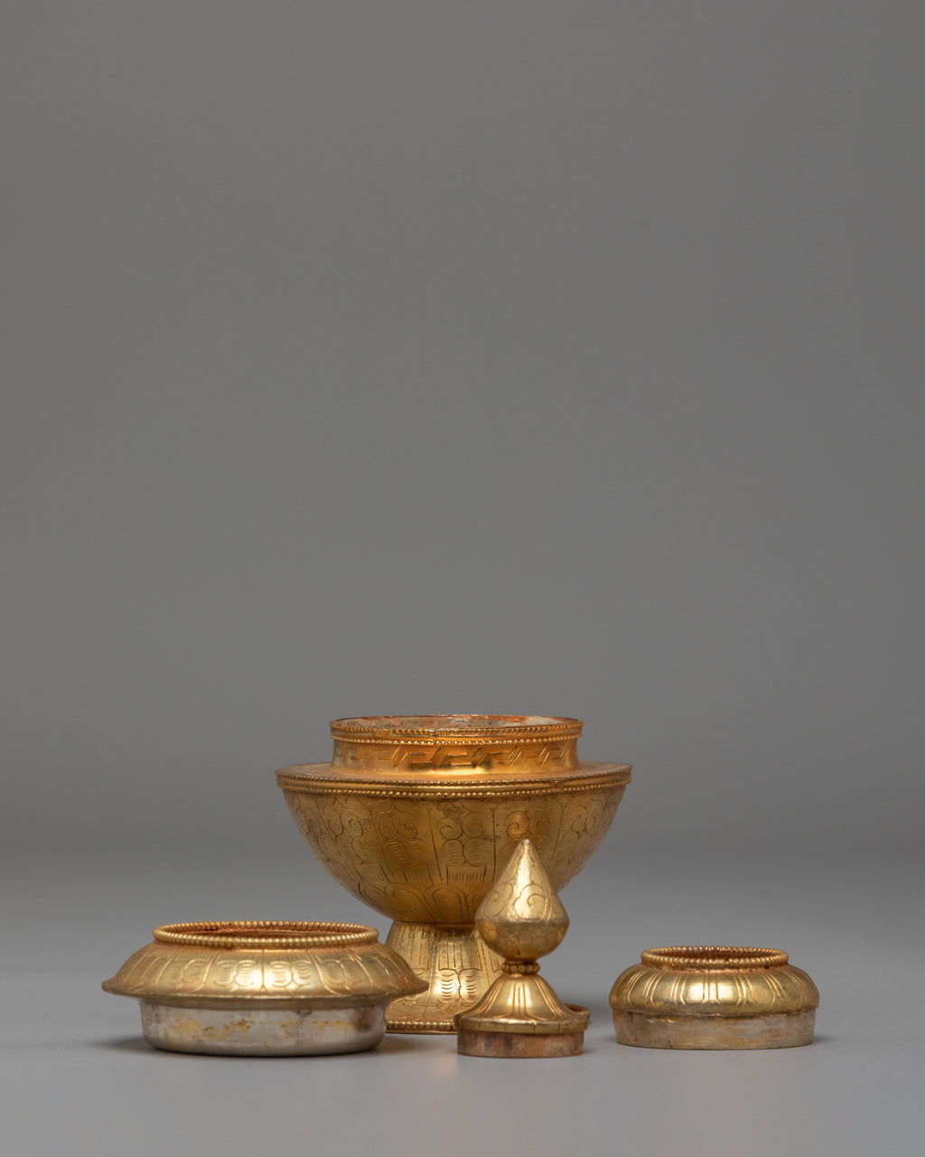 Tibetan Sacred Gold-Plated Ritual Rice Pot | Ceremonial Offerings