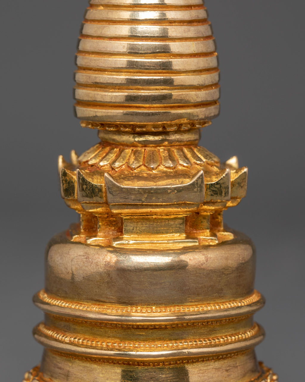 Exquisite Gold Plated Stupa | Beautiful Copper Stupa for Spiritual Decor