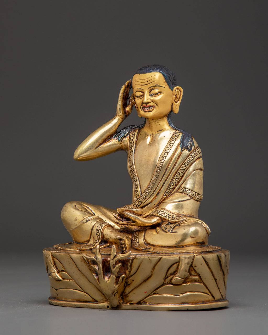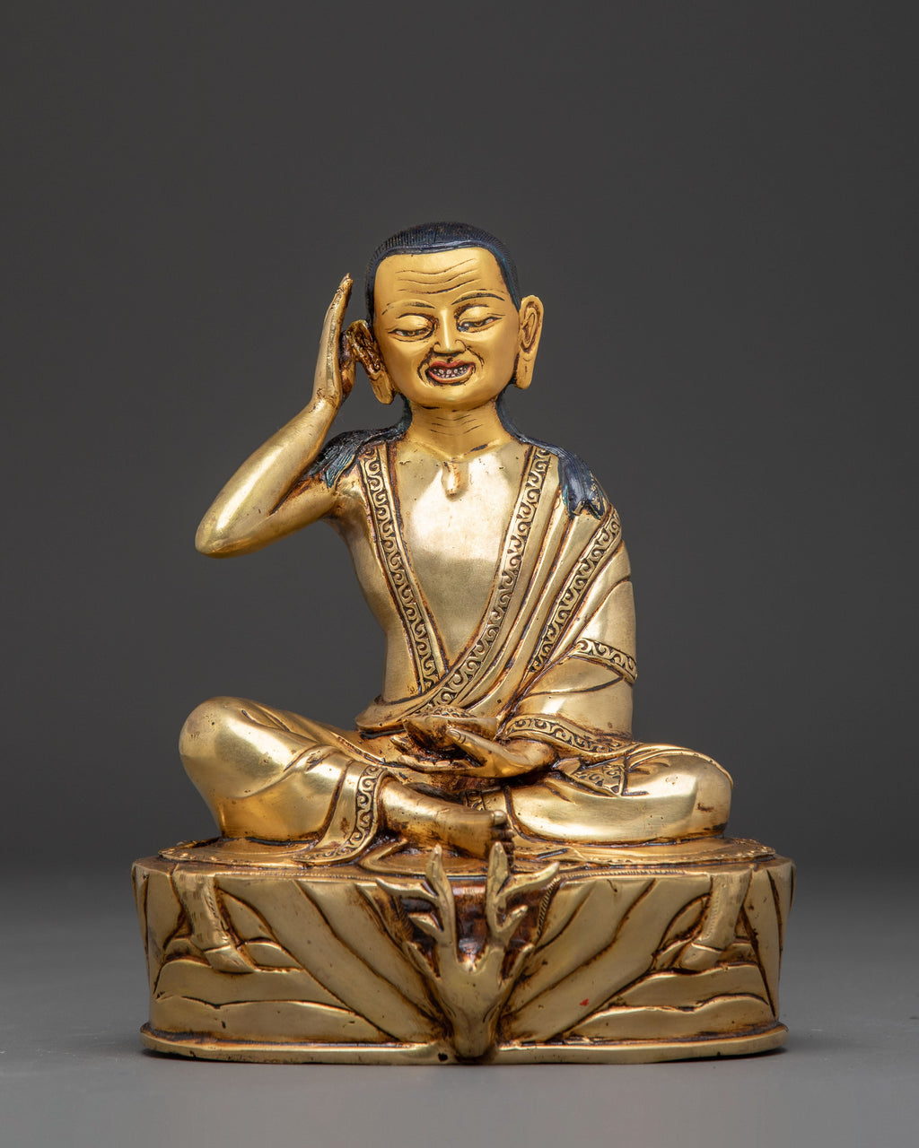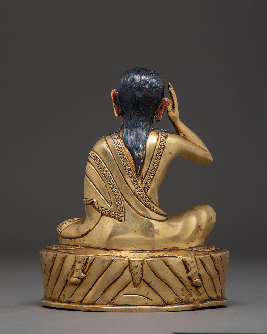 Handmade Golden Statue of Milarepa | Gold-Plated Copper Milarepa Statue for Meditation