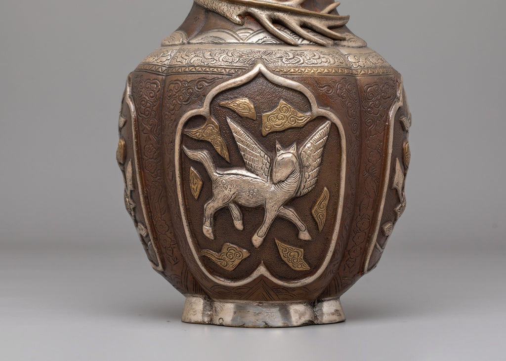 Traditionally used to hold sacred flowers for offerings and rituals, this vase holds deep spiritual significance. Its craftsmanship honors ancient traditions and invites positive energy into your home or temple, fostering peace, balance, and a sense of connection to the divine. Whether placed in a meditation room, altar, or as a centerpiece, it radiates tranquility and reverence, enriching both your environment and spirit.