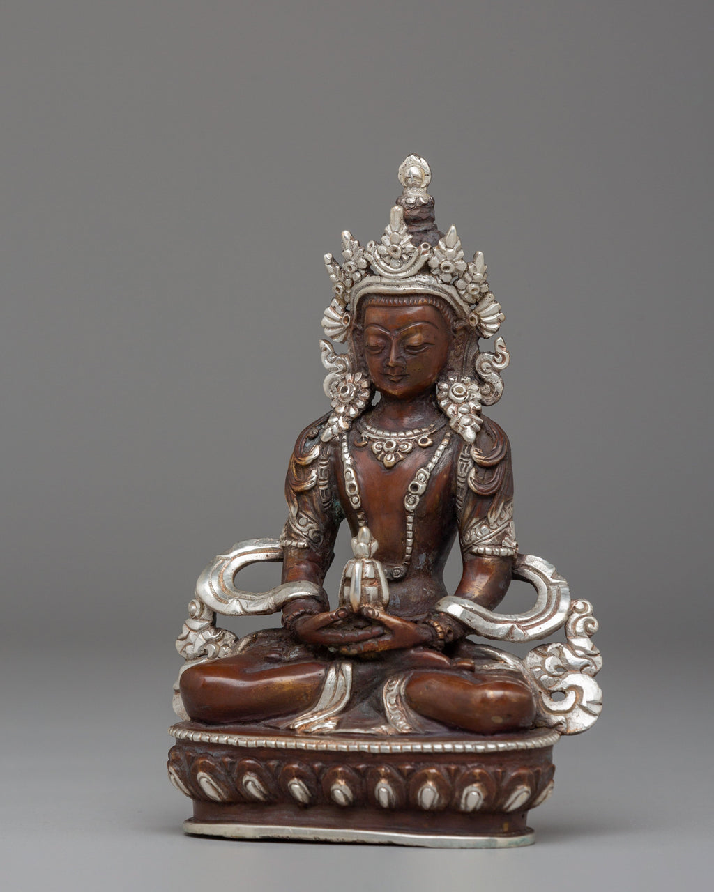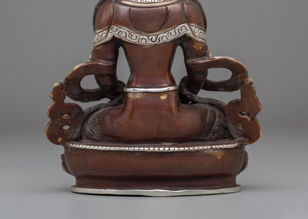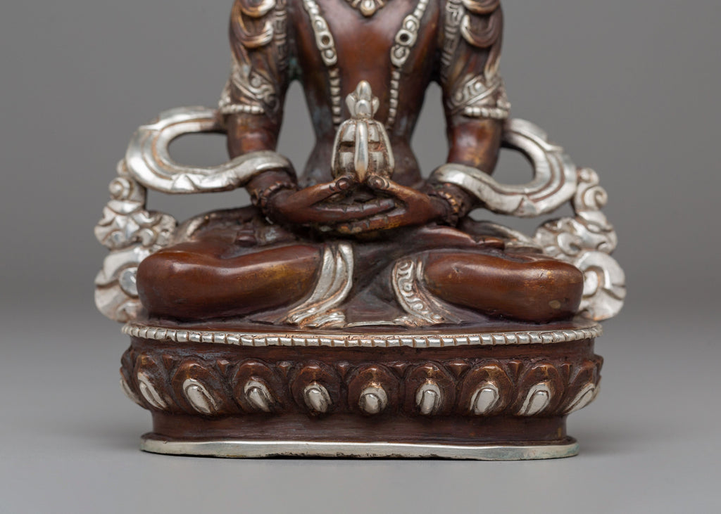 Handmade Silver Plated Amitayus Statue for Dharma Decor