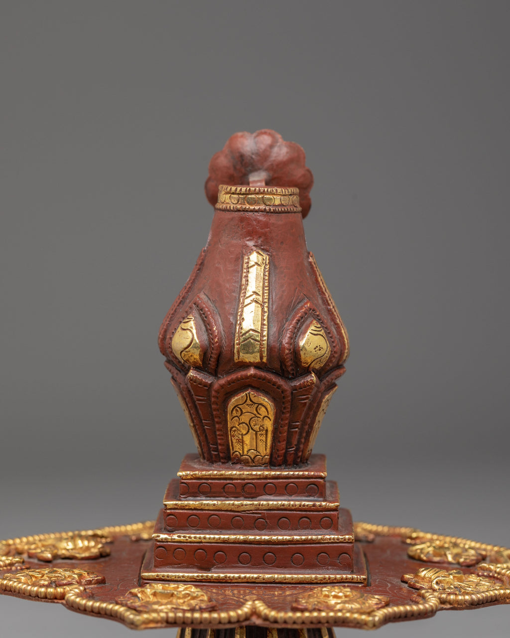 Sacred Gold Plated Vajrayana Torma | Buddhist Shrine Ritual Object