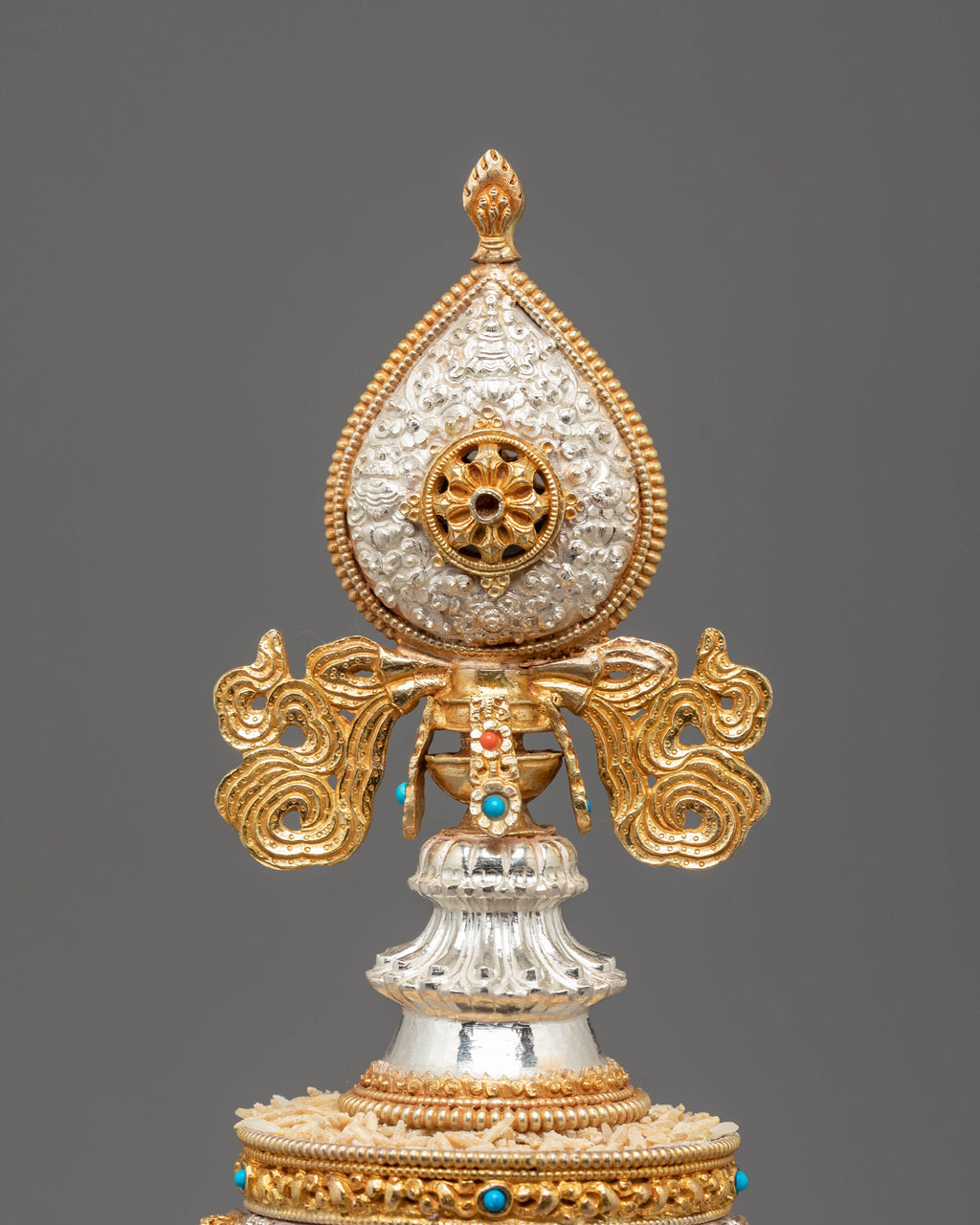 A rice bowl represents prosperity, sustenance, fertility, and abundance. Thus, a Rice Bowl is reputed to assist you in warding off any evils to the household and, at the same time, aid you in achieving prosperity in wealth and happiness in your family life. Mostly seen on the Buddha's hands, Buddhist monks traditionally used rice bowls to accept offerings from people.