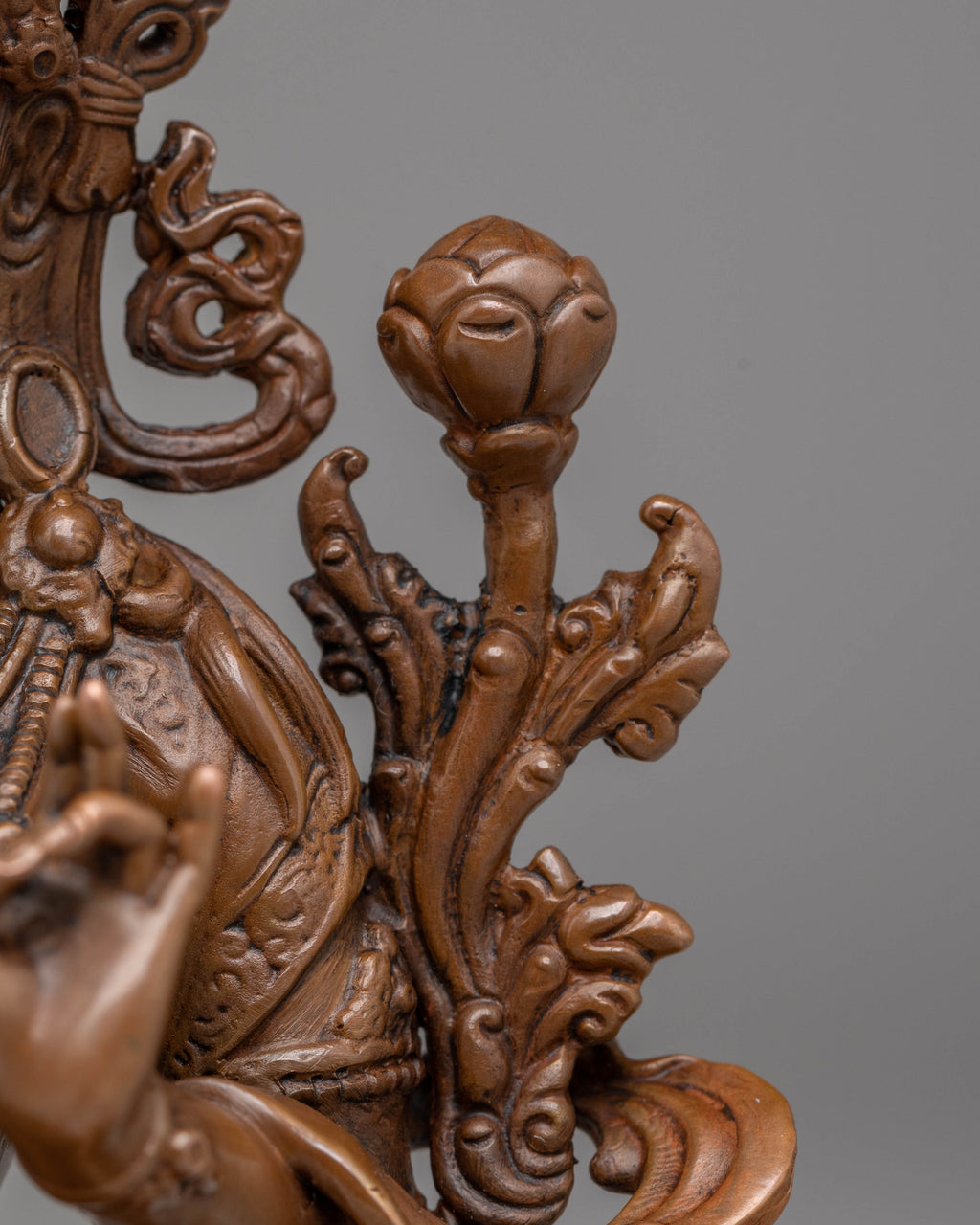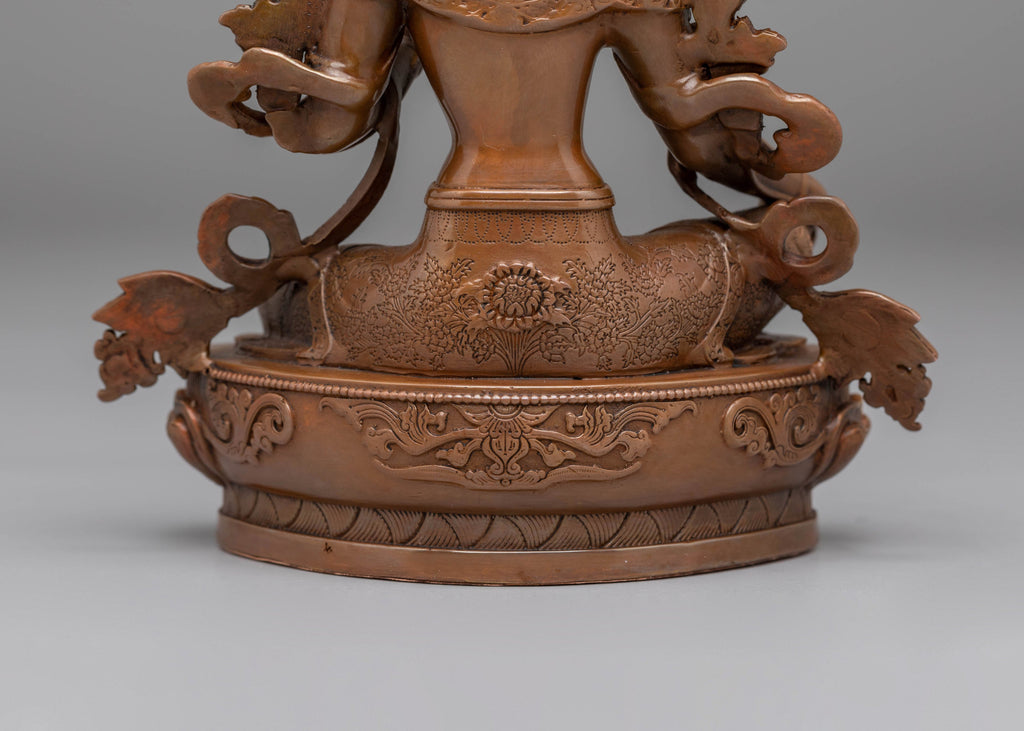The statue's intricate details showcase traditional Himalayan craftsmanship, with every curve and posture carefully designed to reflect the essence of Shyama Tara's compassionate nature. The oxidized copper finish adds depth and warmth, symbolizing the transformative power of her blessings. Ideal for meditation, prayer, or as a meaningful decorative piece, this Shyama Tara statue serves as a constant reminder of courage, compassion, and swift action in overcoming life's difficulties. Whether placed on a home altar or gifted to someone seeking spiritual guidance, this statue offers both beauty and profound spiritual significance.