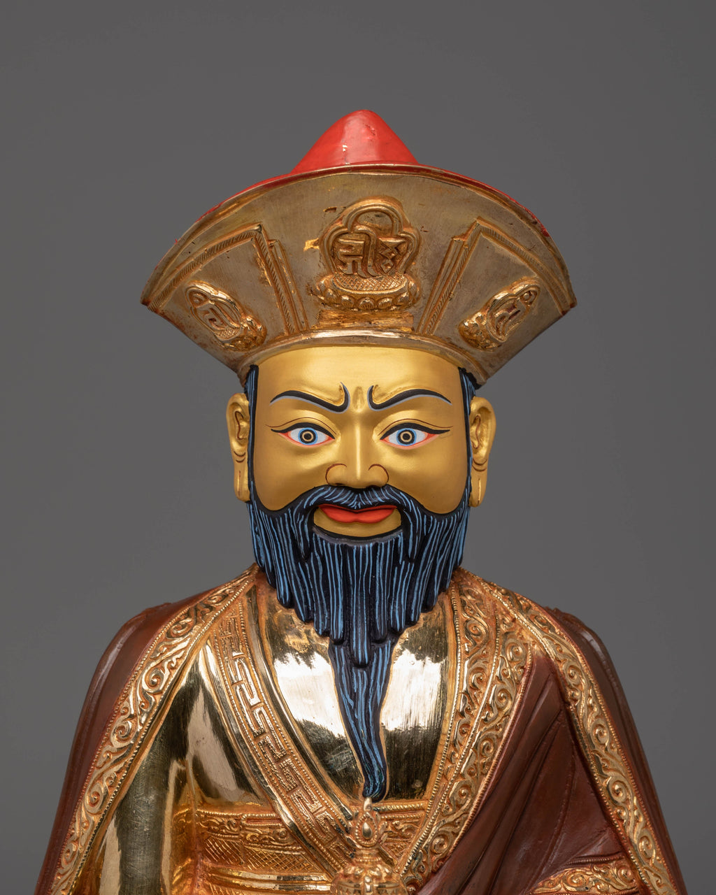 Representing guidance, protection, and enlightened awareness, the Statue of Guru Shapdum brings a strong spiritual presence into any altar, meditation space, or home. Practitioners highly value Guru Shapdum as an embodiment of clarity and spiritual stability, and this statue serves as a receptacle for offerings, prayers, and contemplative rituals. Its vibrant artistry and sacred symbolism make it an excellent choice for collectors, practitioners, and admirers of Tibetan Buddhist art.