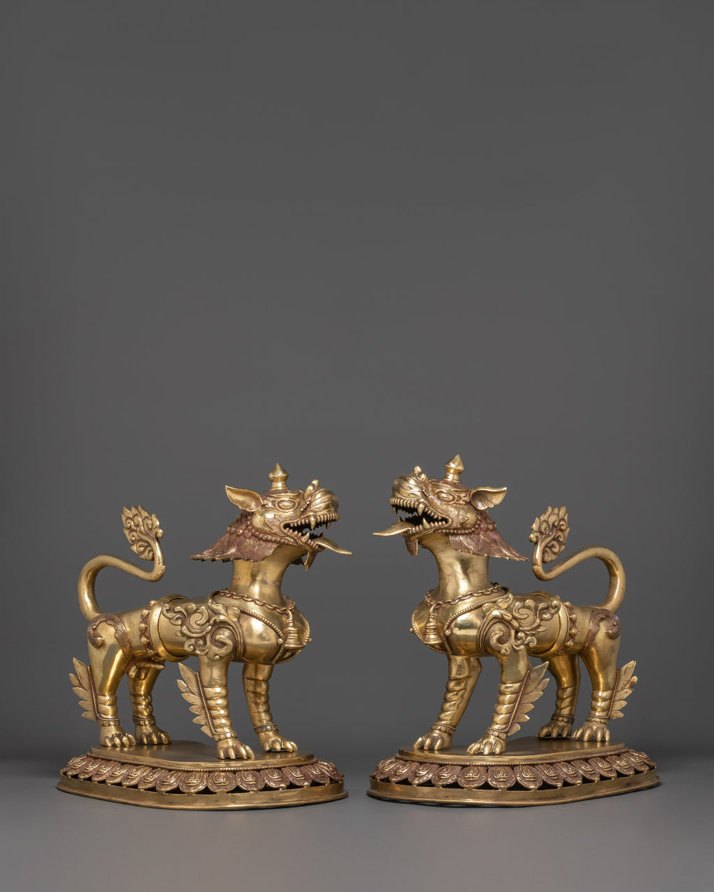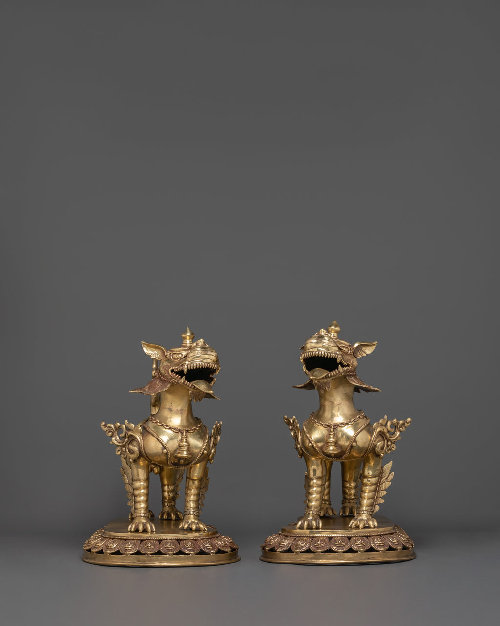 Handmade Tibetan Buddhist Guardian Lions Set | Sacred Buddhist Art Decor