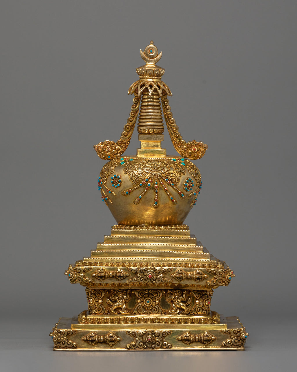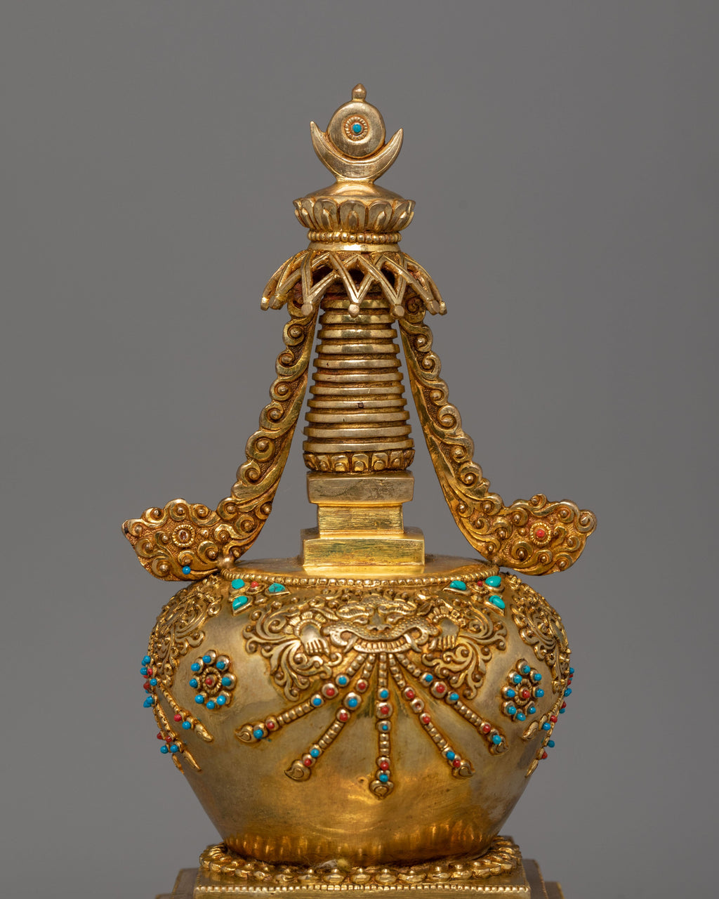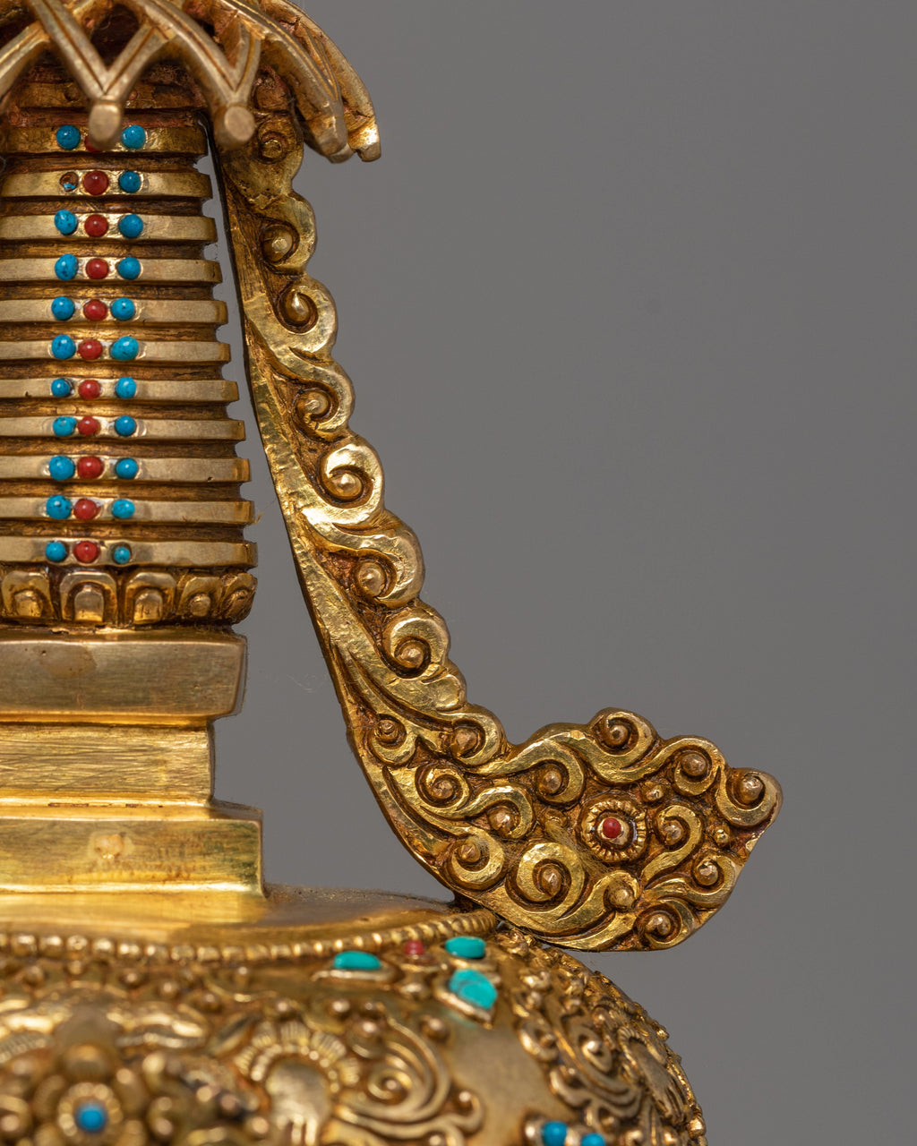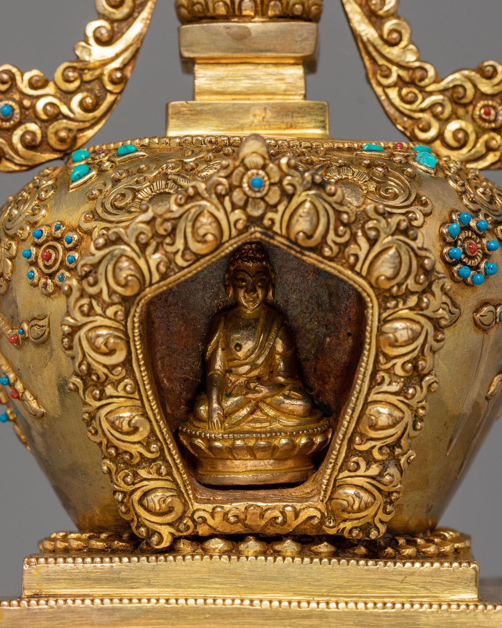Handcrafted Gold Plated Chorten | Turquoise Coral Buddhist Reliquary Stupa