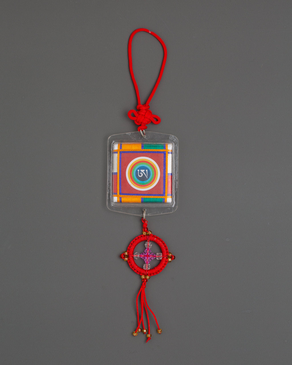 Perfect for hanging in your home, car, office, meditation altar, or above doorways and windows, this Tibetan Buddhist protection buti serves multiple spiritual purposes. Whether you're a Buddhism practitioner, meditation enthusiast, feng shui follower, or drawn to Tibetan culture, this handmade charm combines traditional craftsmanship with powerful sacred symbolism. The canvas backing features the sacred Tibetan syllable encircled by rainbow rings, while crystal beads and golden accents on the endless knot ornament add extra blessings and eternal protection. Display this authentic Tibetan protection buti to invite blessings, remove obstacles, balance the five elements in your space, and create a protective barrier against negativity. Ideal as a Buddhist car hanging decoration, spiritual gift, or essential addition to any meditation space, each buti carries the wisdom of ancient Buddhist teachings and offers daily spiritual support.