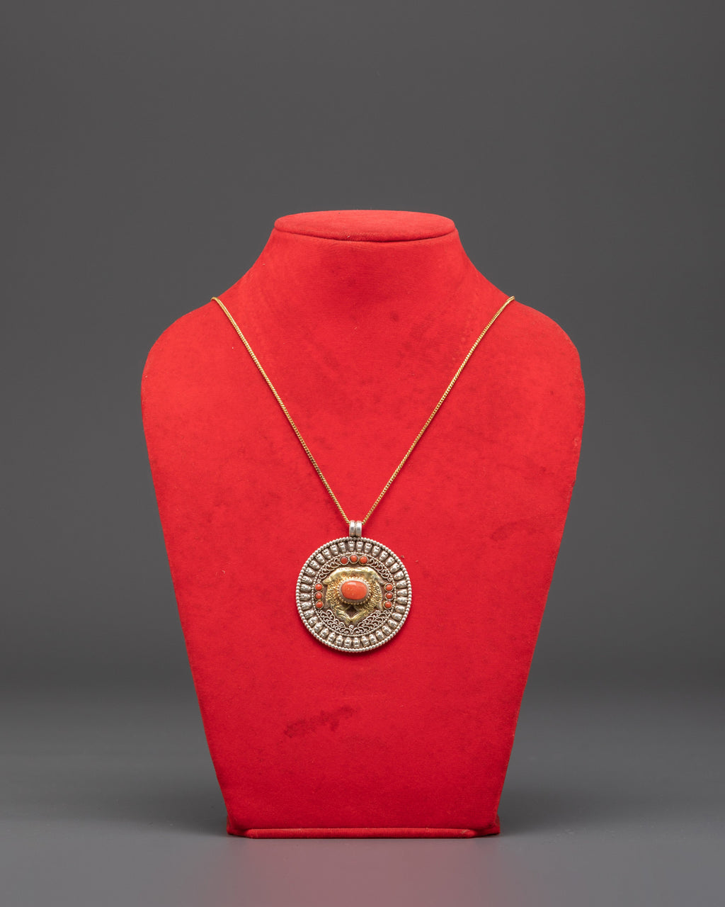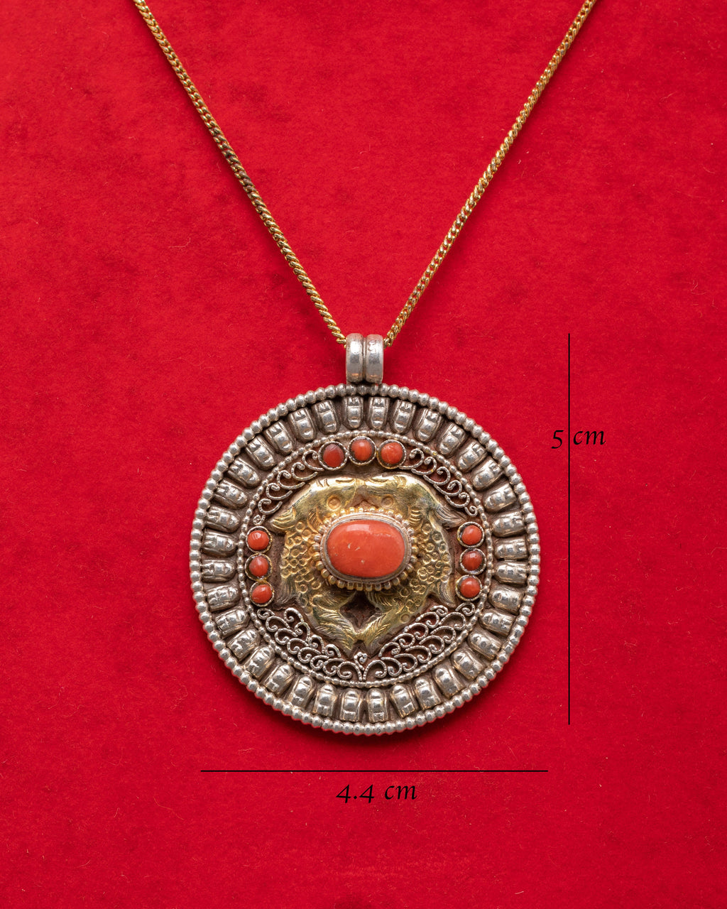 This Buddhist pendant is crafted using silver, gold-plating, and semi-precious coral, making it an ideal piece for those who value spiritual symbolism and cultural significance. Whether you're on a meditative path, drawn to meaningful jewelry, or inspired by Tibetan teachings, this Tibetan coral amulet offers a thoughtful connection to more profound wisdom and spiritual insight. Keywords such as Tibetan coral jewelry, Buddhist amulet, and spiritual silver pendant help bring visibility to those seeking symbolic and mindful adornments.