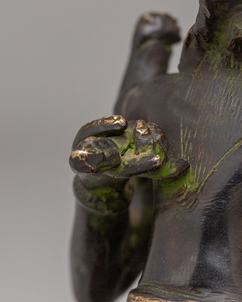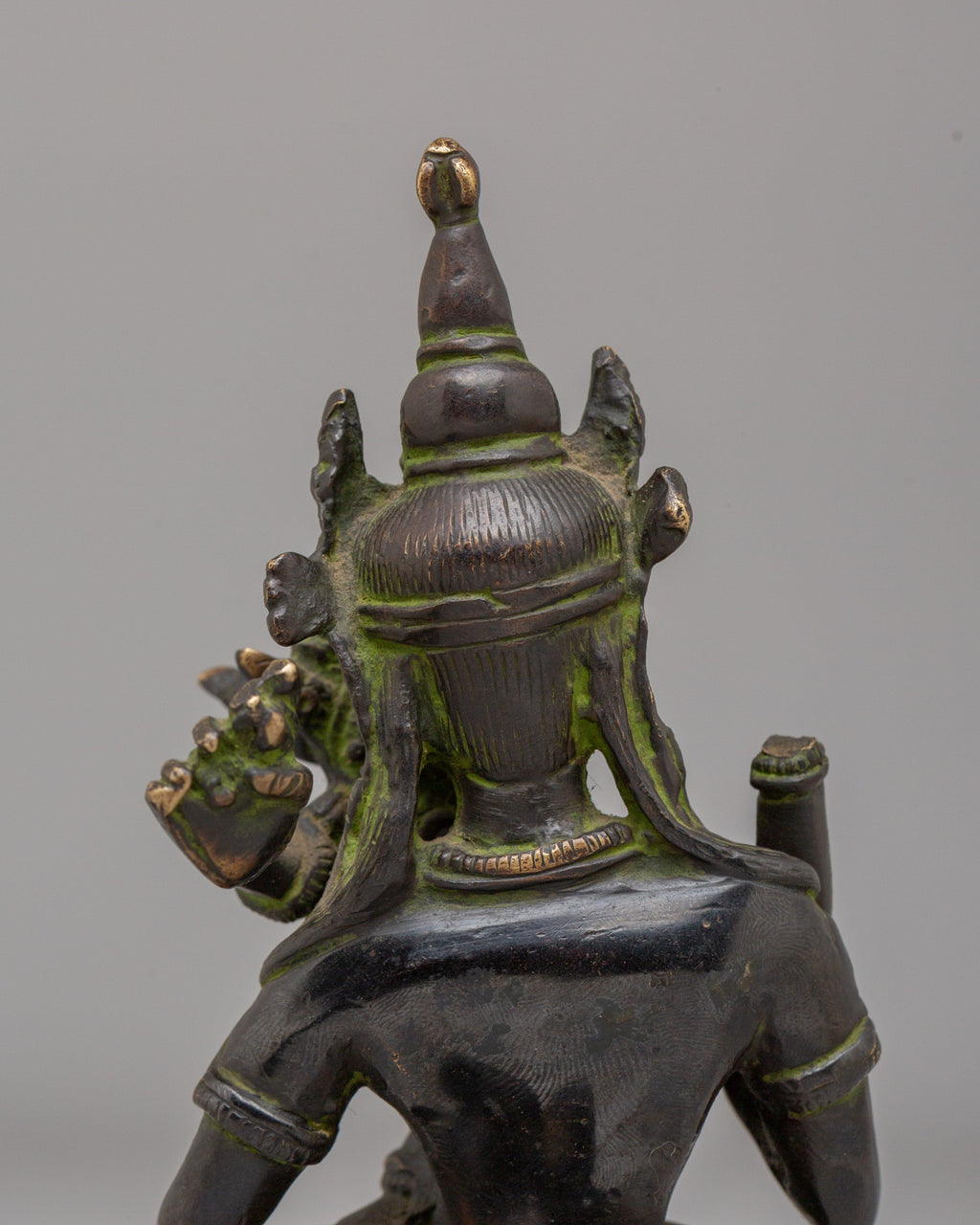 The Vajrasattva and Consort Statue is a handcrafted bronze statue, standing 14 cm tall and 9 cm wide, weighing 0.81 kg. This statue features Vajrasattva, the embodiment of purity and spiritual transformation, depicted alongside his consort. Known for their deep connection in Tibetan Buddhist teachings, Vajrasattva represents the power of purification and enlightenment, while his consort symbolizes wisdom and the union of compassionate energy. The craftsmanship and intricate details of this statue make it a for any spiritual space, perfect for meditation altars, temples, or as a meaningful gift.