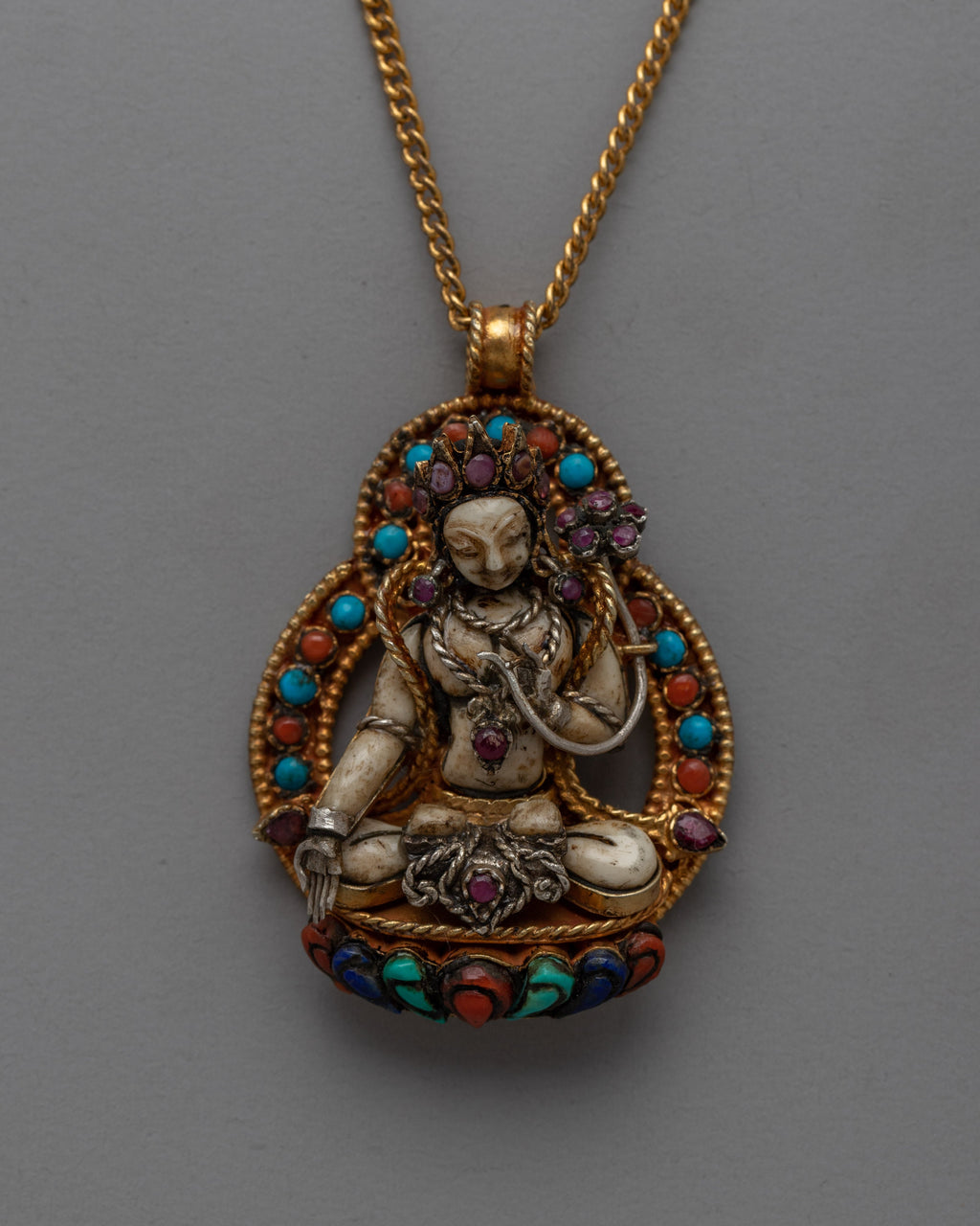 Sacred White Tara Amulet with Gold Base & Original Stones