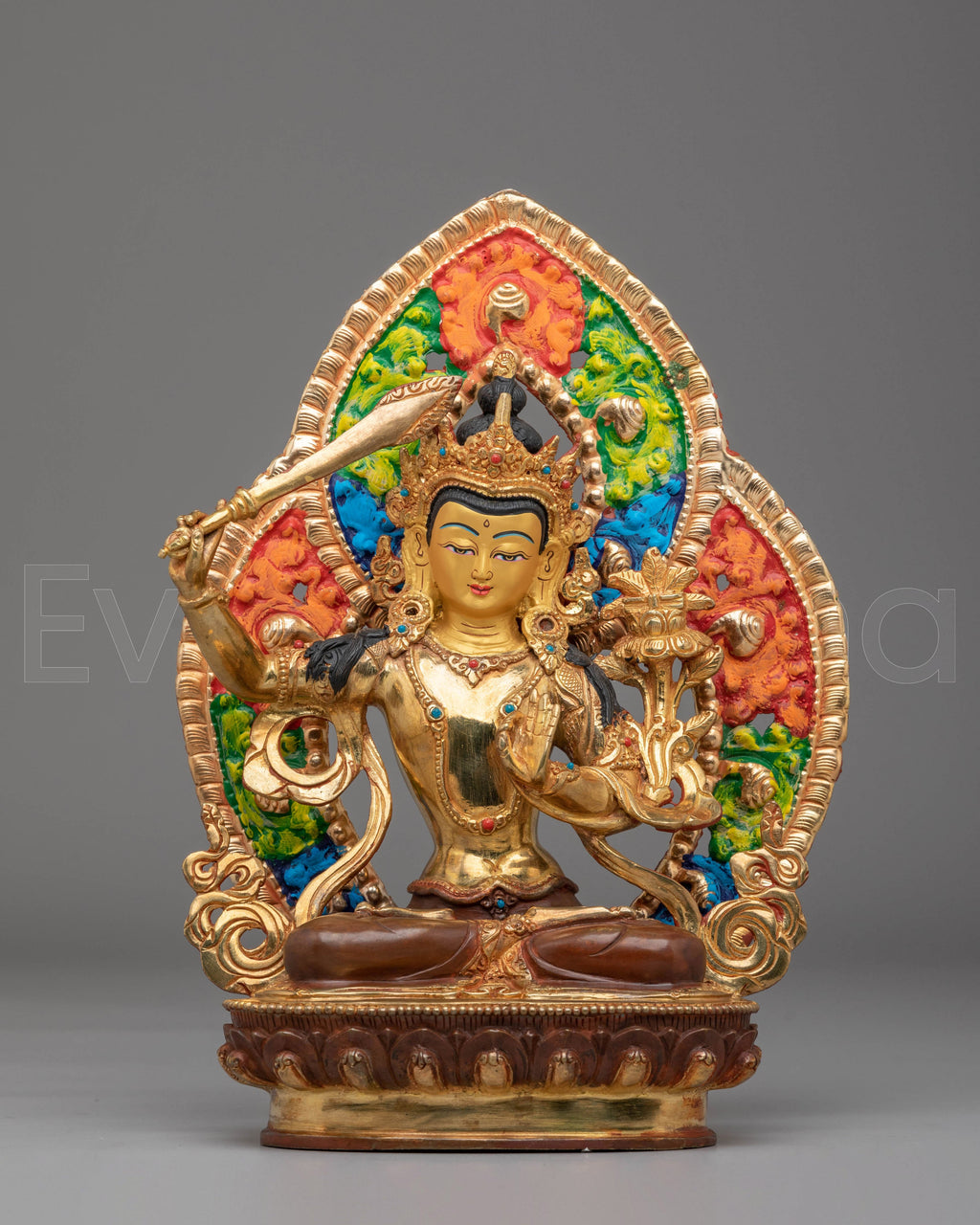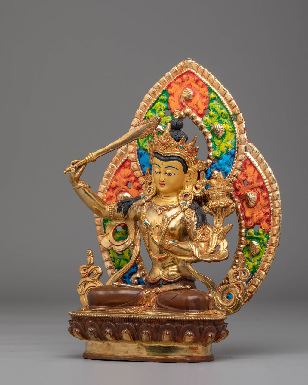 Handmade Sacred Wisdom Deity Manjushri Statue | Himalayan Artwork for Meditation