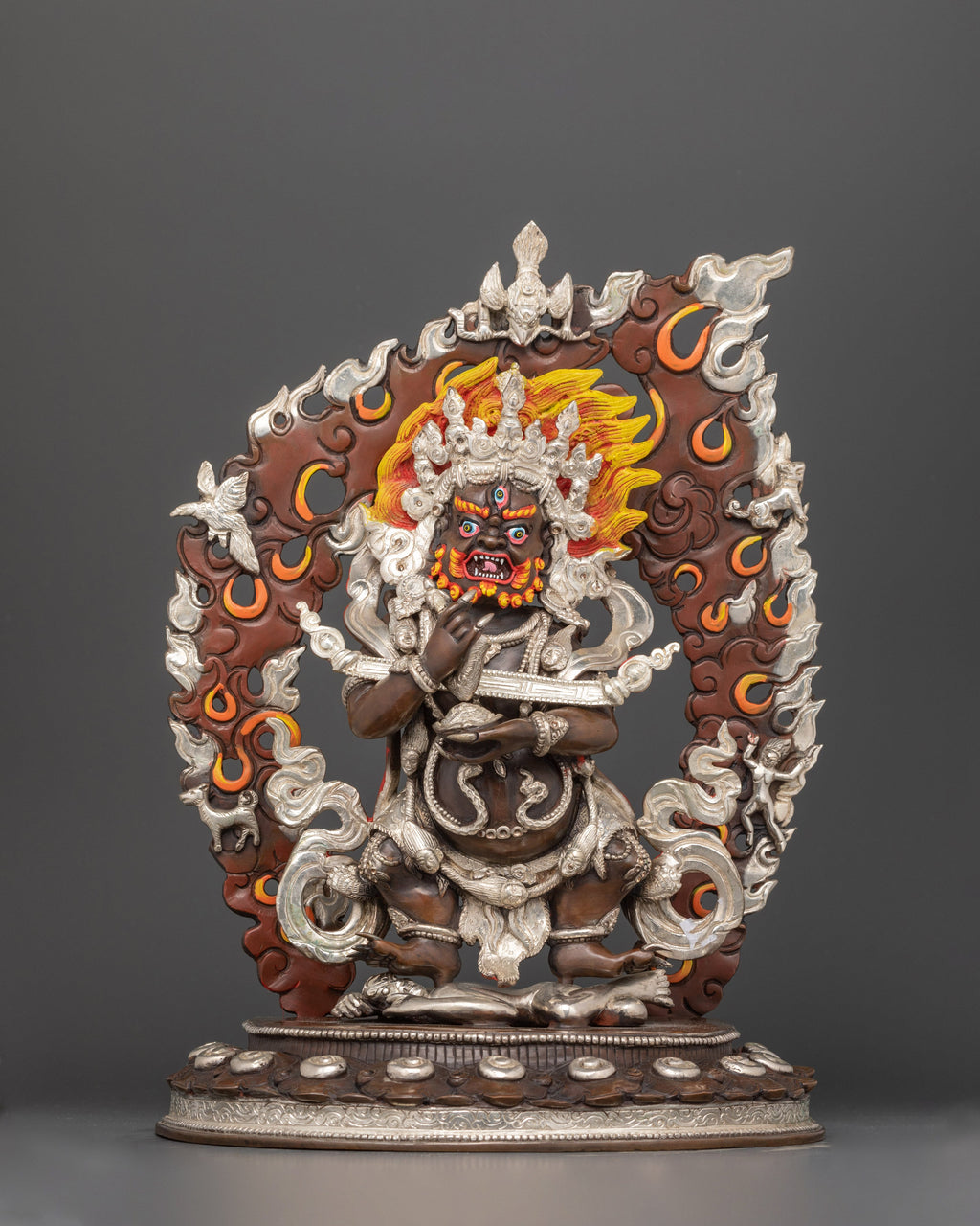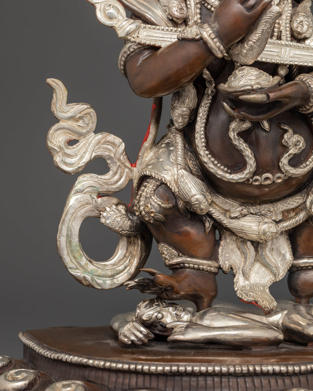 Invite Fierce Protection with the Sakya Mahakala Silver Plated Oxidized Copper Statue