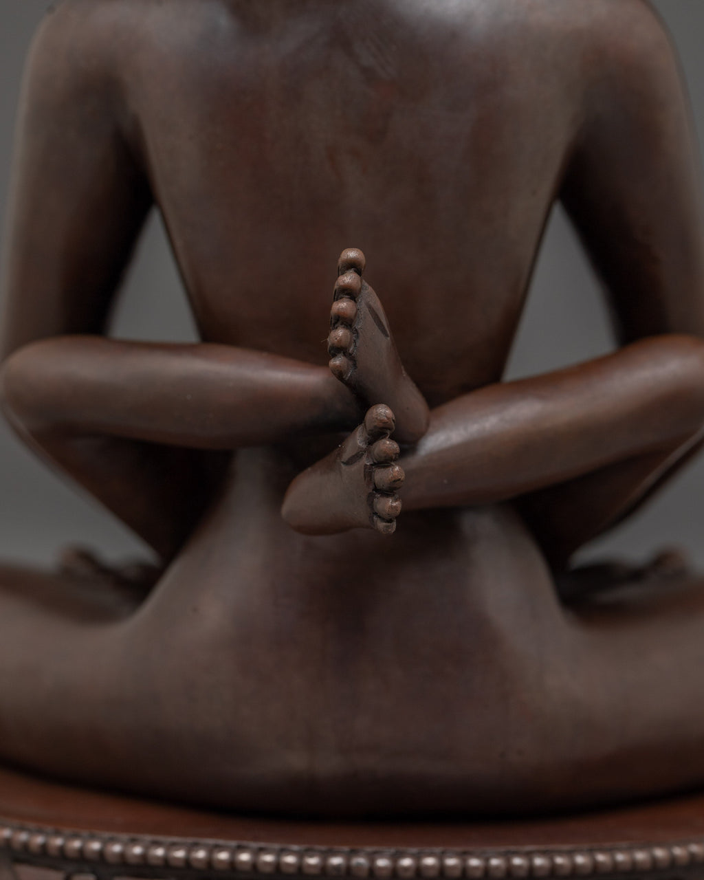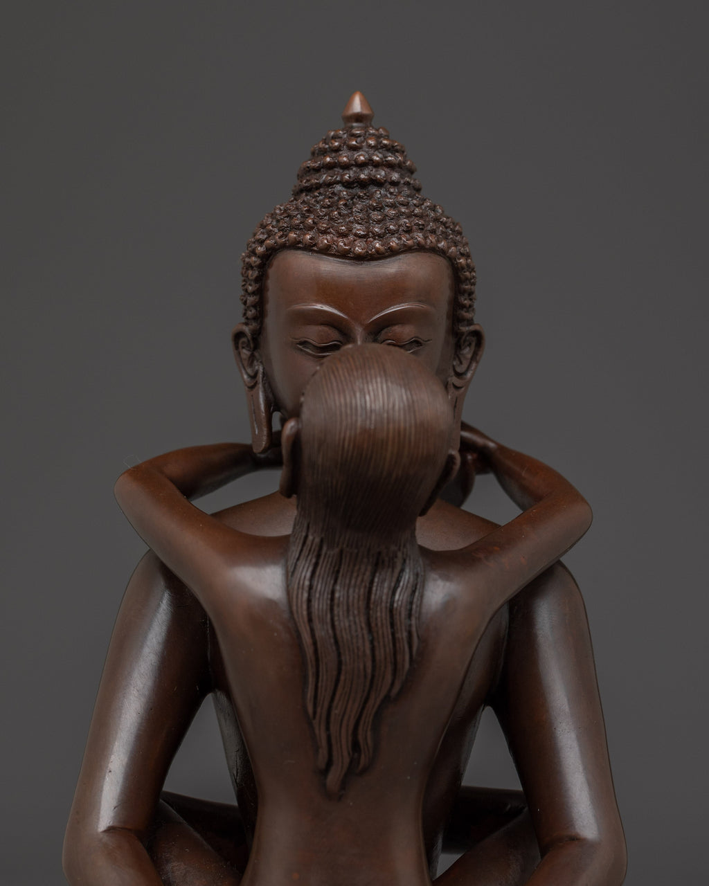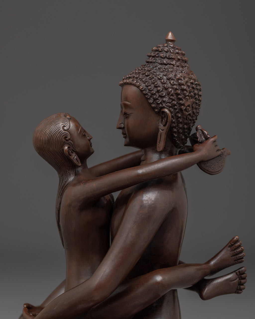 Samanthabhadra with consort Statue measuring 8.5” (21.5 cm) in height with a 6.7” (17 cm) base and weighing 1.84 kg, is intricately handcrafted from oxidized copper. Depicted in the yab-yum posture with his consort Samantabhadri, this statue symbolizes the union of primordial awareness and emptiness—the essence of the Dzogchen teachings in the Nyingma tradition of Tibetan Buddhism. Ideal for meditation spaces or sacred displays, this statue serves as a powerful representation of non-dual wisdom and the enlightened state beyond form.