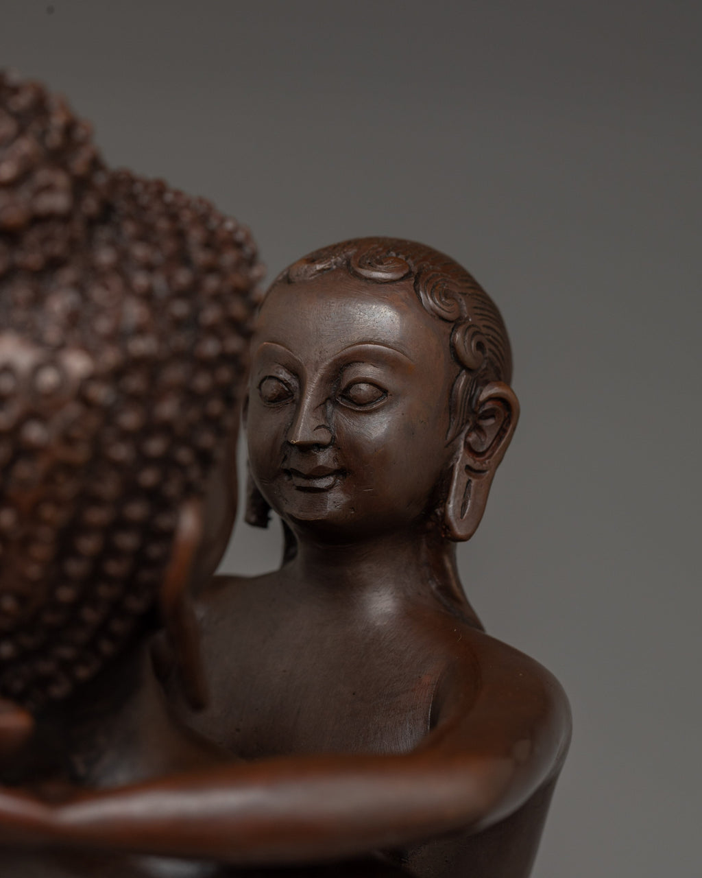 Samantabhadra, meaning "Universal Worthy," is the bodhisattva of practice, meditation, kindness, and action. He is often depicted seated with a consort in the dhyana mudra, forming a triangle hand gesture, symbolizing balance and spiritual harmony. With an ushisha (topknot) on his head, he embodies wisdom and enlightenment. Sitting on a lotus, representing purity, and with elongated earlobes, symbolizing wisdom and detachment, Samantabhadra exemplifies compassion, mindfulness, and virtuous action.
