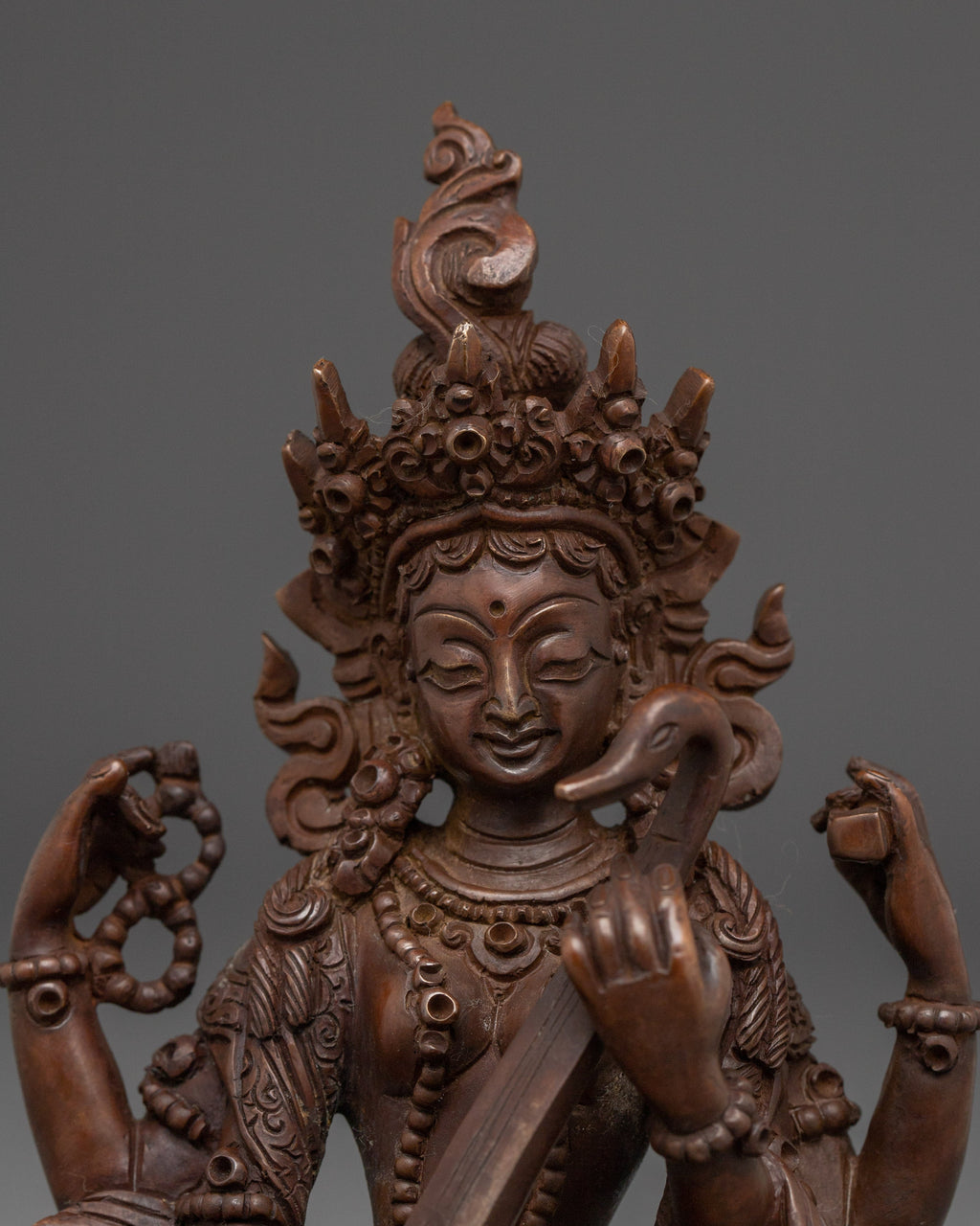 Oxidized Copper Saraswoti Sculpture | Himalayan Spiritual Artwork