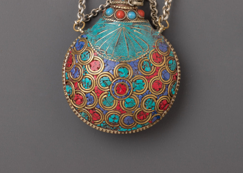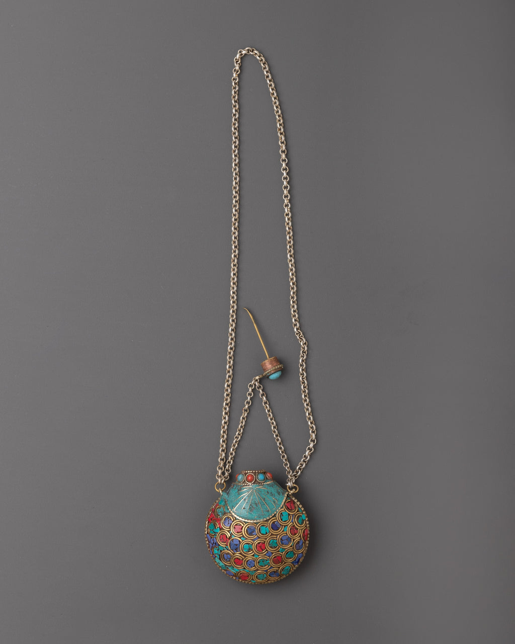 Handmade Tibetan Snuff Bottle Necklace | Traditional Tibetan Enamel Work with Turquoise