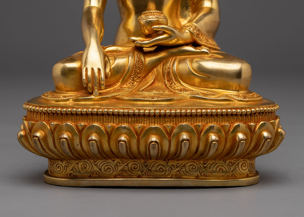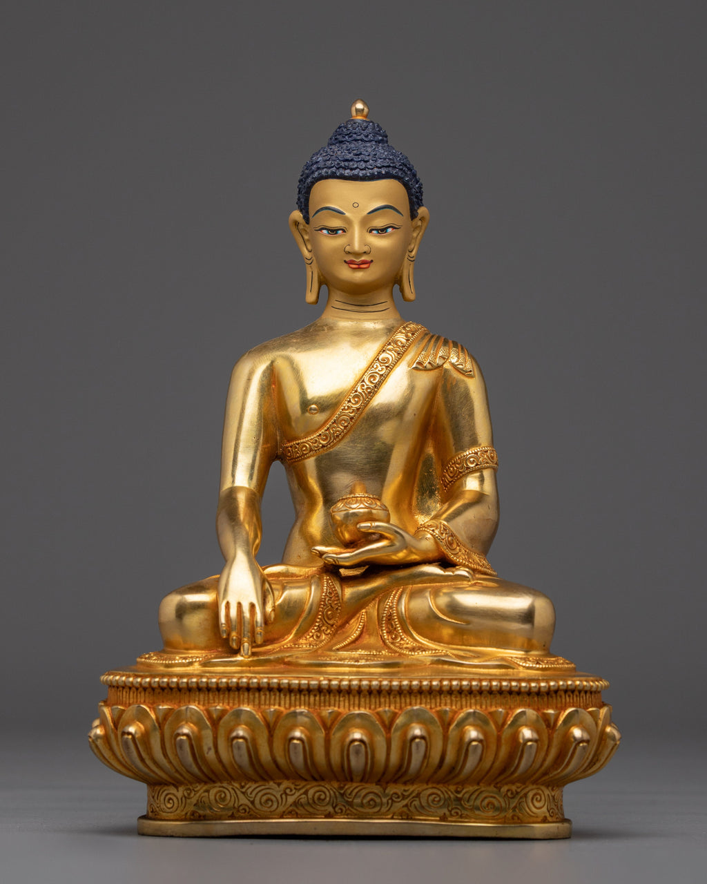 This Sculpture of Shakyamuni Buddha beautifully captures the serene presence of Siddhartha Gautama, the historical Buddha revered as the Enlightened Teacher who revealed the path to liberation. Crafted with meticulous attention to detail, the gold-plated copper statue exudes tranquility and profound wisdom, making it a powerful focal point for meditation rooms, personal shrines, or temple spaces. Its calm expression and elegant posture serve as a constant reminder of mindfulness, compassion, and the ongoing journey toward enlightenment. Ideal for spiritual practitioners, this statue inspires calm and focused reflection, nurturing a deeper connection to Buddha’s timeless teachings.