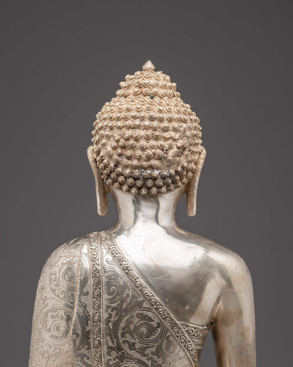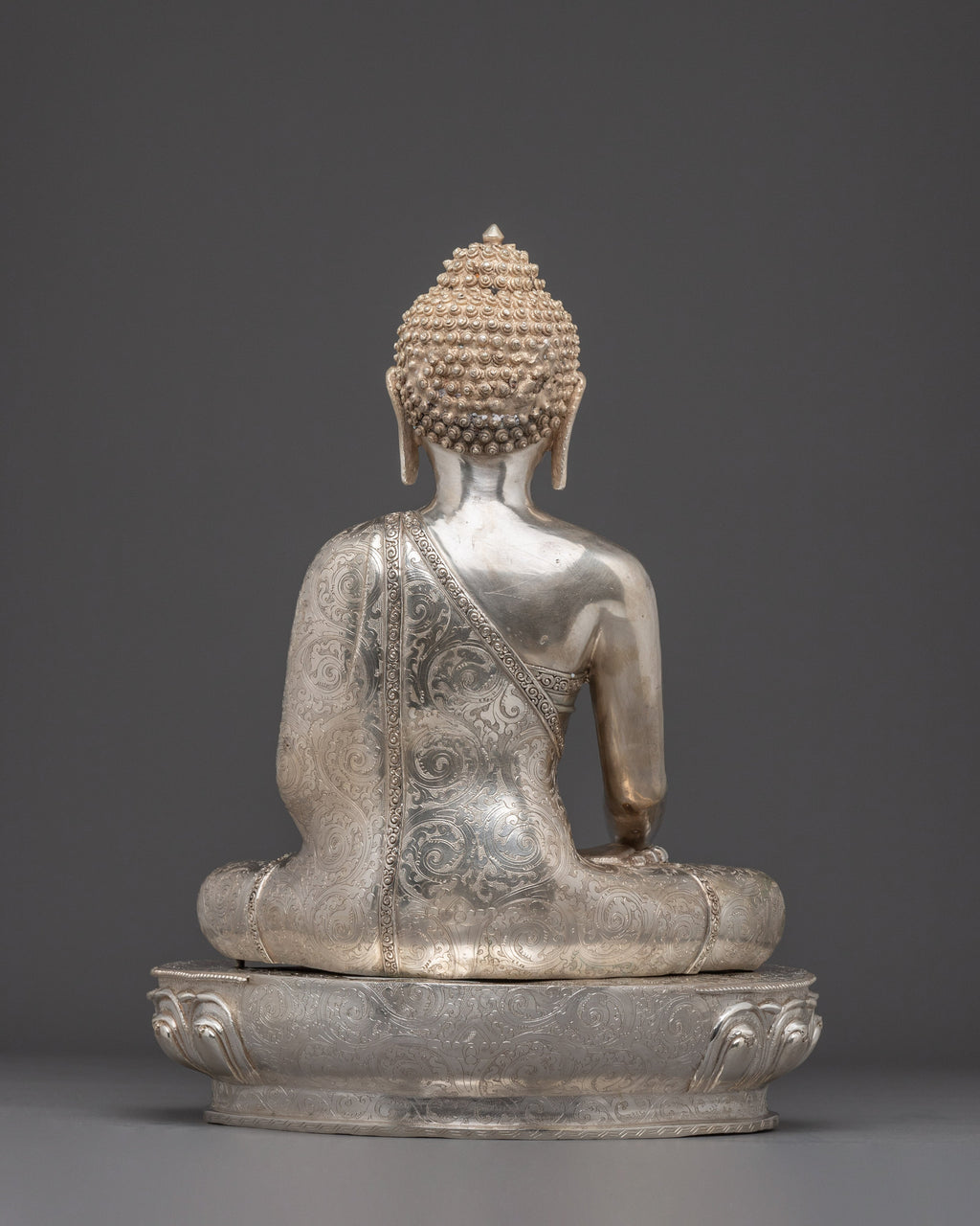 Handmade Serene Silver Shakyamuni Buddha Artwork for Decor