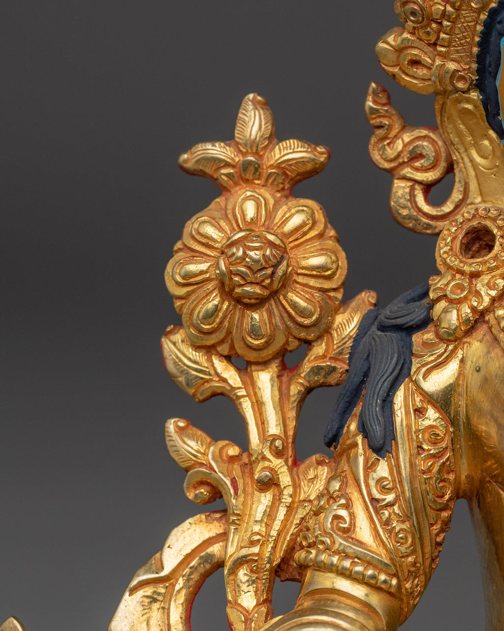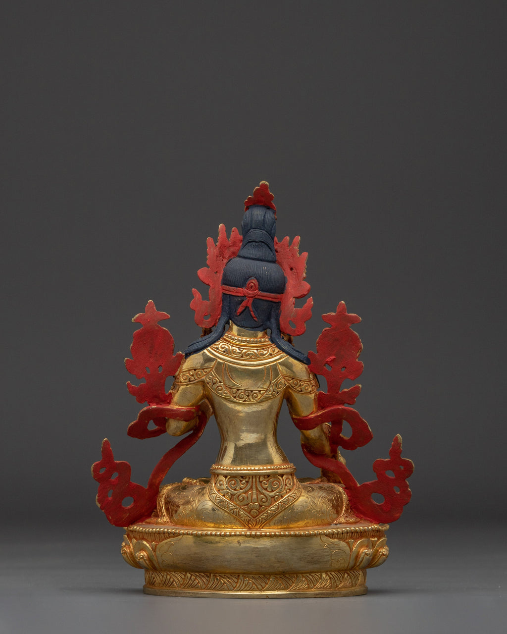 White Tara is depicted with seven eyes, which represent her caring alertness, and make her apart. Aside from the two usual eyes, she has a third eye on her forehead, one on each hand, and one on the soles of her feet. Her graceful appearance and elegant design make this statue a powerful symbol of healing, compassion, and protection, inviting longevity and good health to those who revere her.