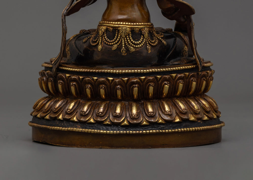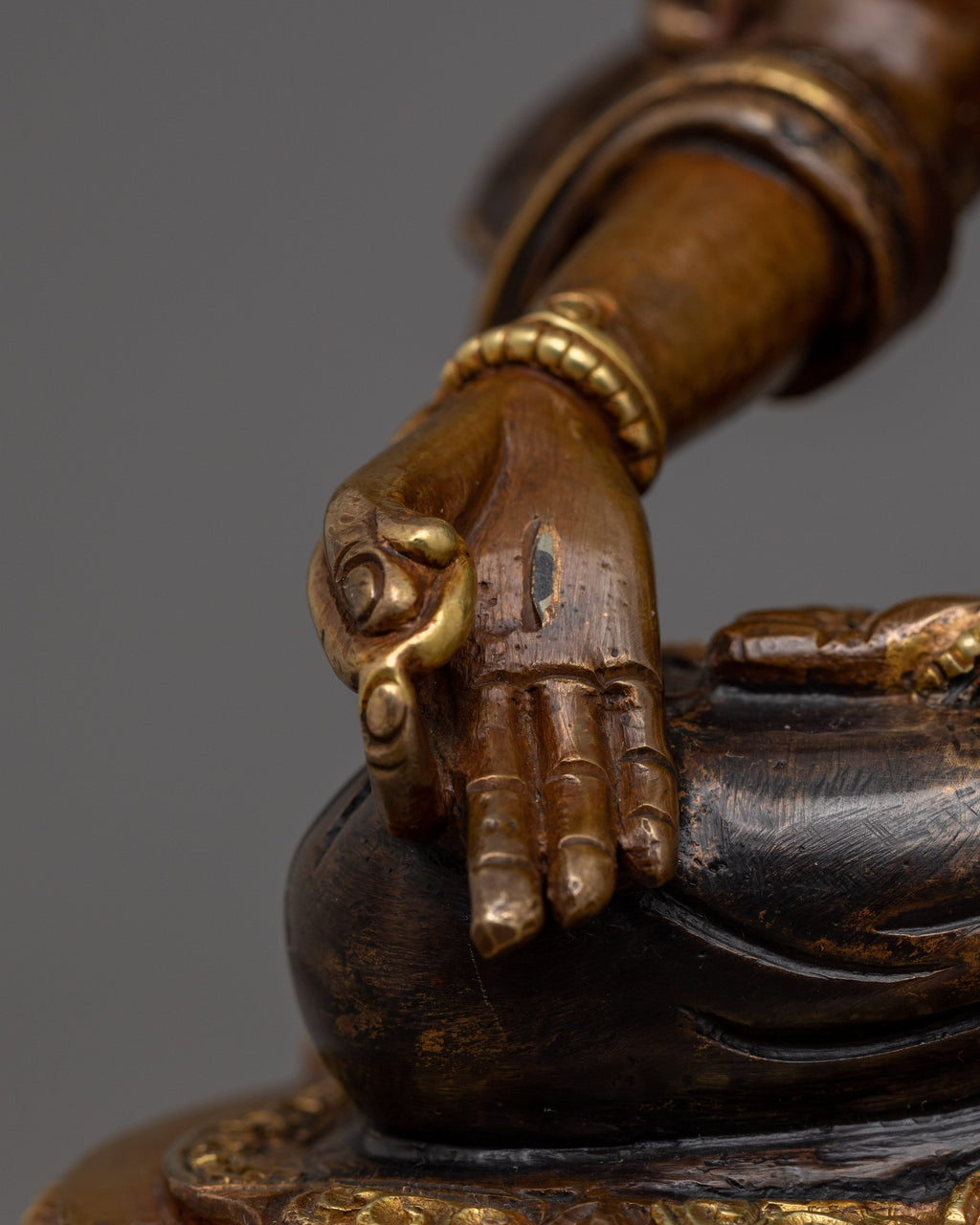 White Tara is depicted with seven eyes, which represent her caring alertness, and make her apart. Aside from the two usual eyes, she has a third eye on her forehead, one on each hand, and one on the soles of her feet. Her graceful appearance and elegant design make this statue a powerful symbol of healing, compassion, and protection, inviting longevity and good health to those who revere her.