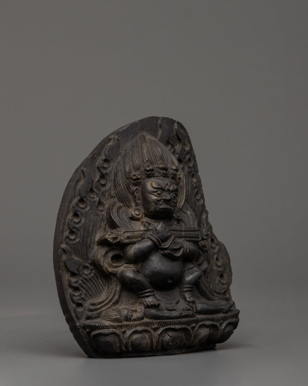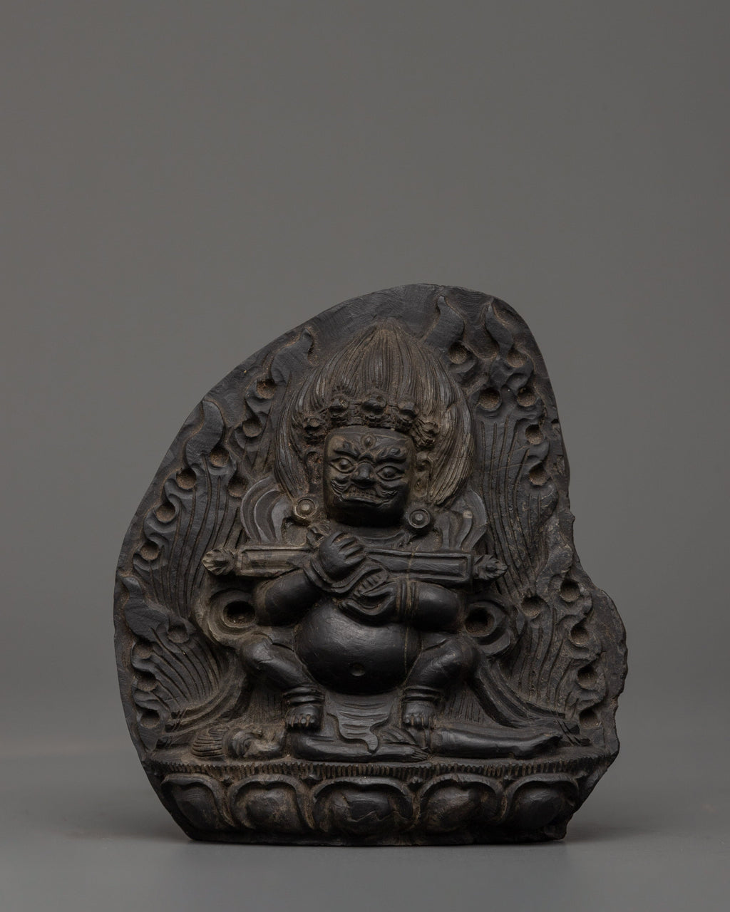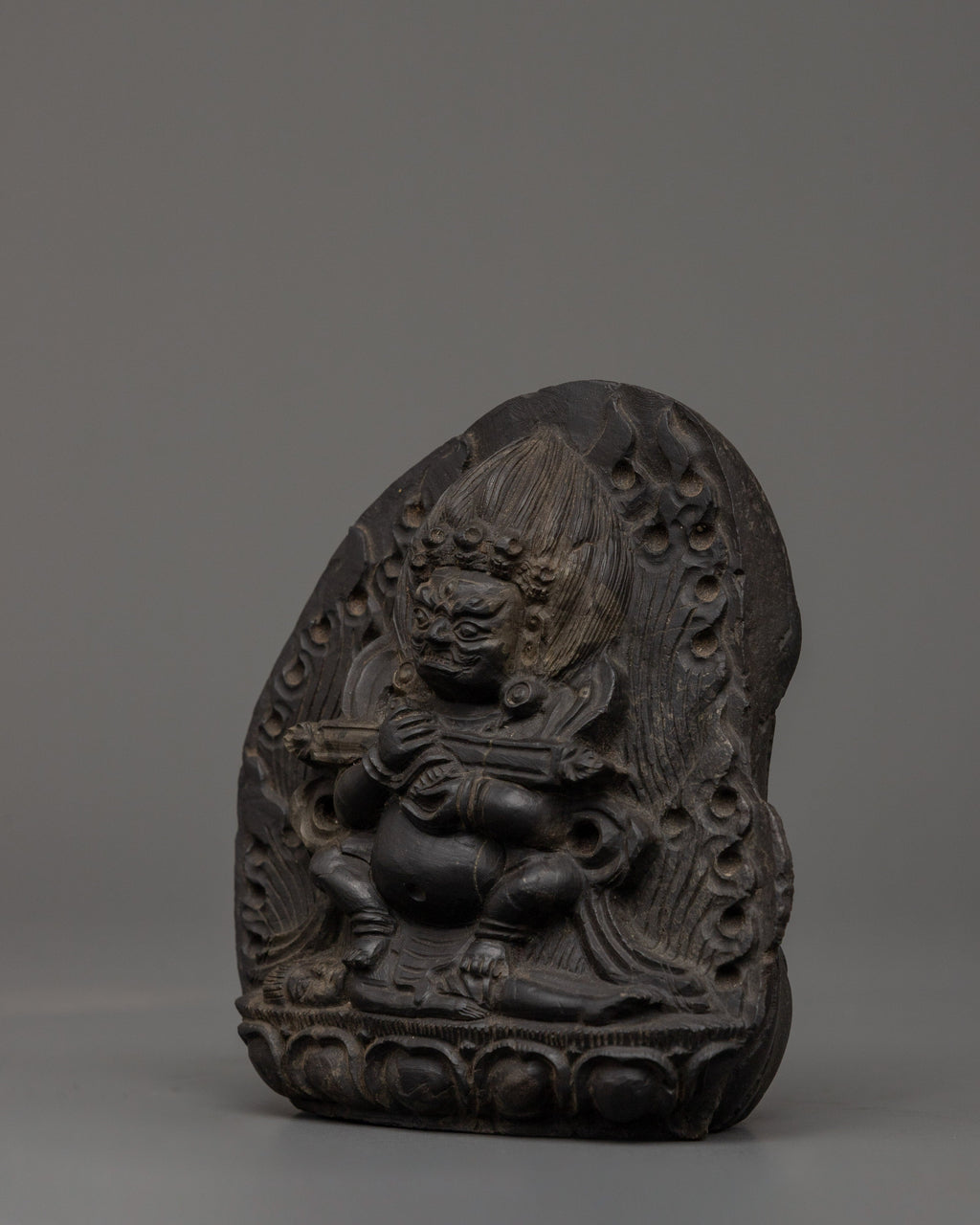 This Mahakala statue, carved from Saligram stone, is a precious stone of great spiritual significance and emits heavenly energy. Weighing 0.528kg, it is symbolic and ideal for ceremonial use, energy protection, or as a spiritual gift for Buddhist practitioners and collectors. Whether employed for daily prayers, mindfulness meditation, or as a guardian figure, this statue is a classic addition to any sacred place.