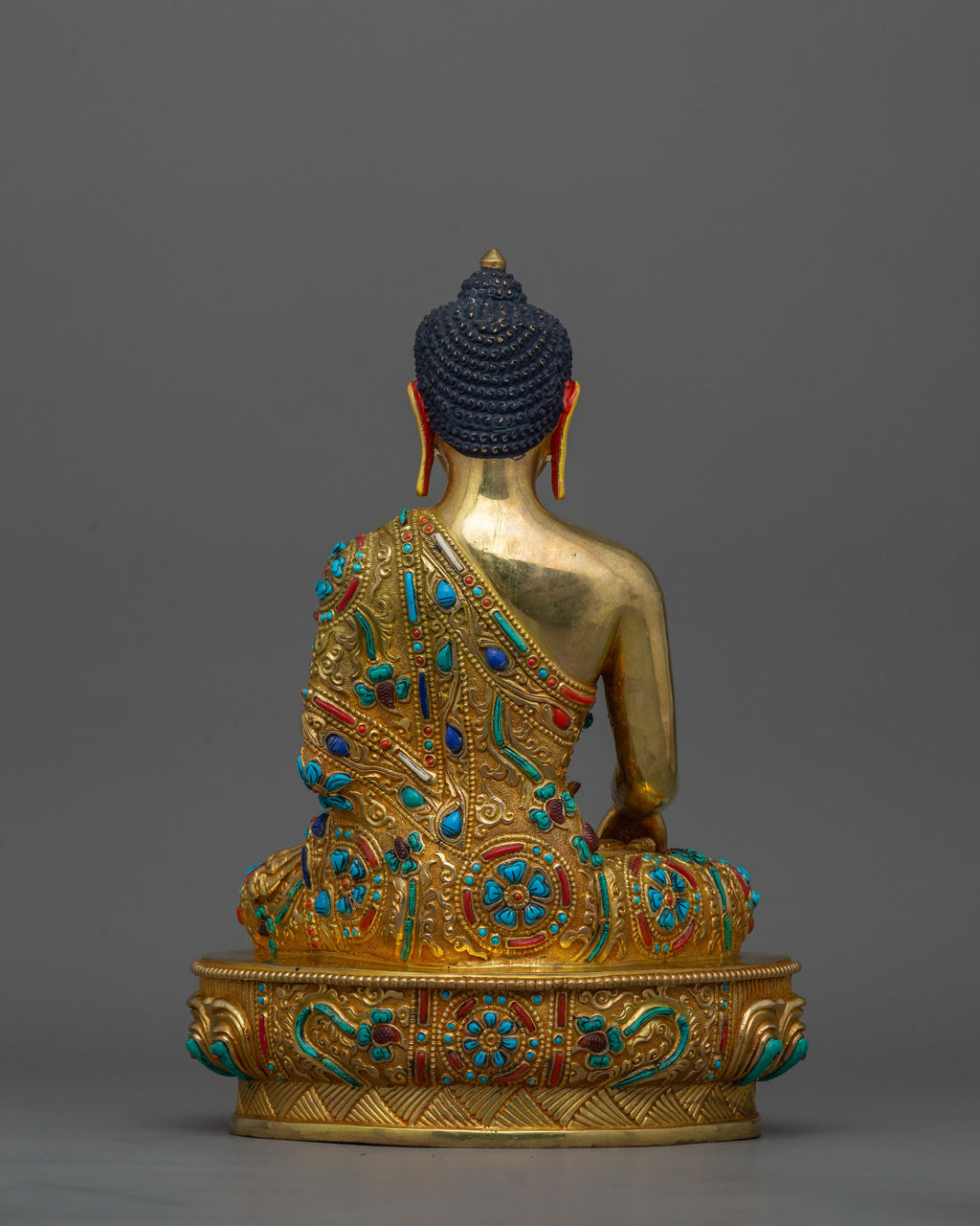 Handmade Shakyamuni Buddha Statue adorned with carved Gemstone
