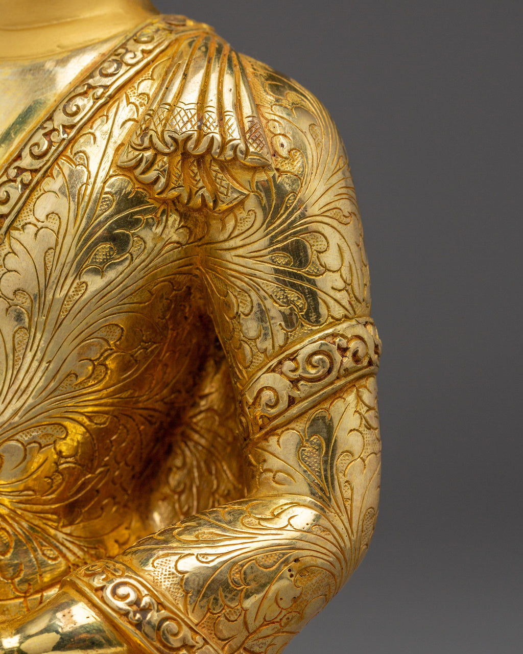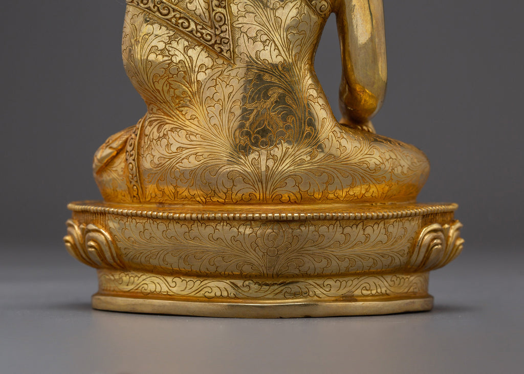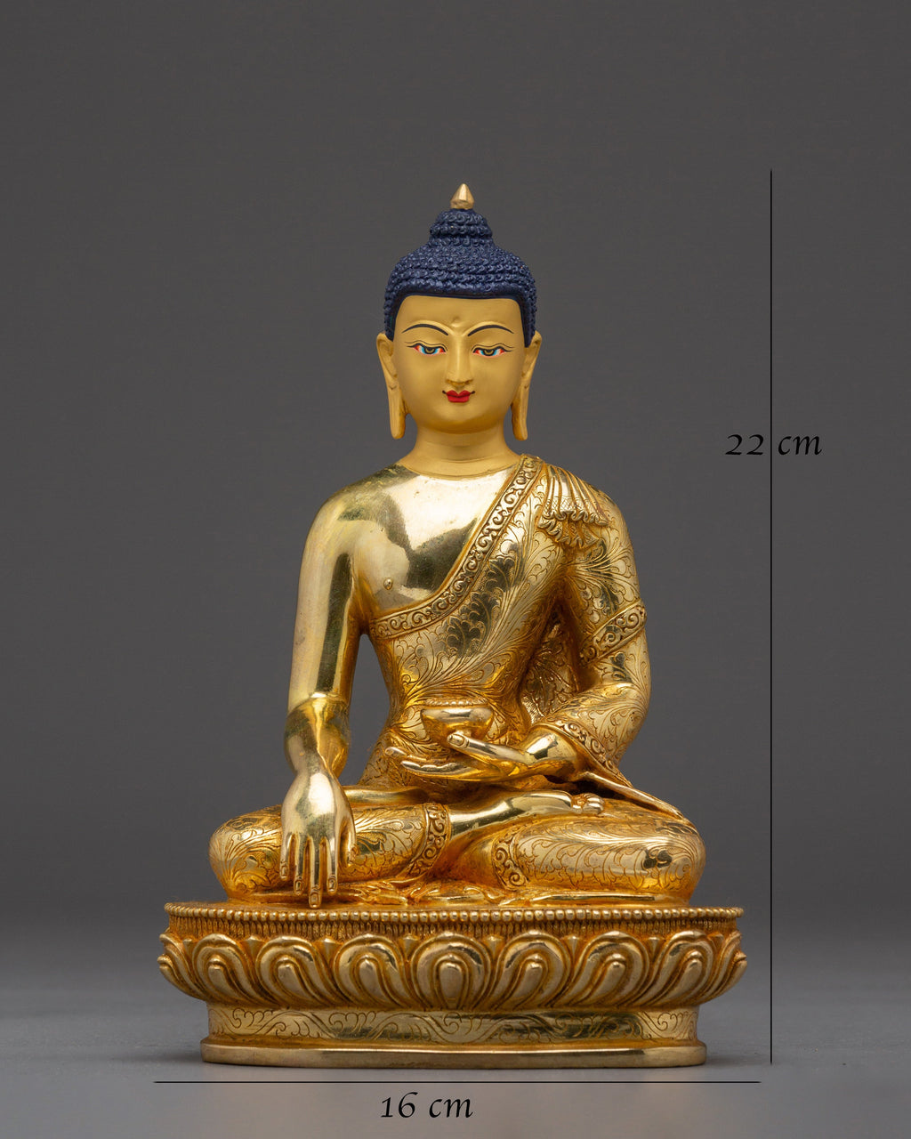 This Shakyamuni Buddha Historical Buddha Statue honors Siddhartha Gautama, the Enlightened Teacher whose teachings illuminate the path to liberation. Revered as the founder of Buddhism, Shakyamuni Buddha symbolizes profound compassion, mindfulness, and wisdom. This handcrafted copper statue, beautifully gold-plated, captures his serene presence with meticulous detail, inviting a sense of calm and spiritual clarity into any space. Its peaceful expression and rich symbolism make it an inspiring focal point for meditation areas, altars, or sacred home shrines. Perfect for those seeking to cultivate inner peace and mindful awareness, this statue serves as a meaningful reminder of the transformative power of Buddha’s teachings.