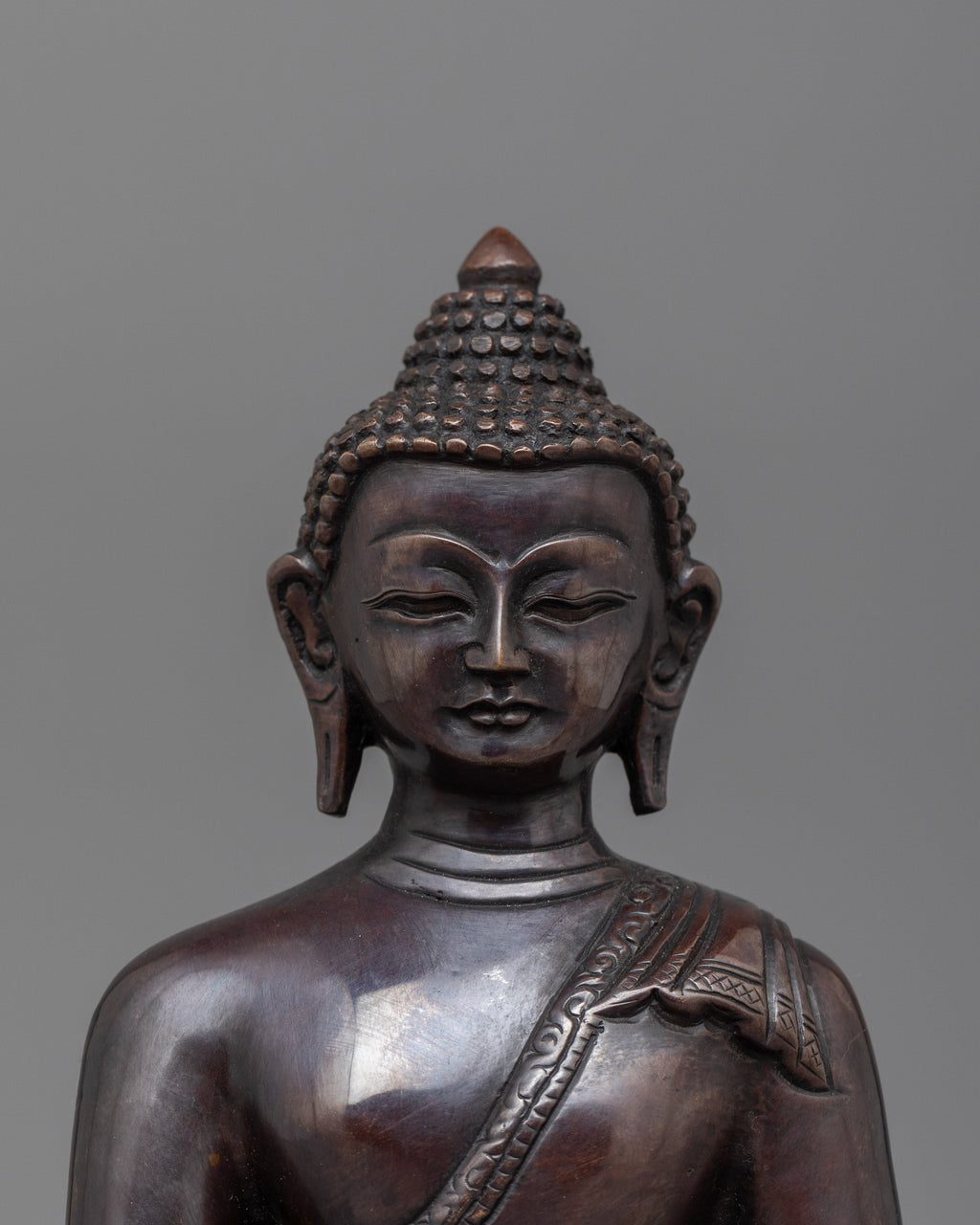 Handcrafted Shakyamuni Buddha Oxidized Tibetan Figure for Shrine, Altar