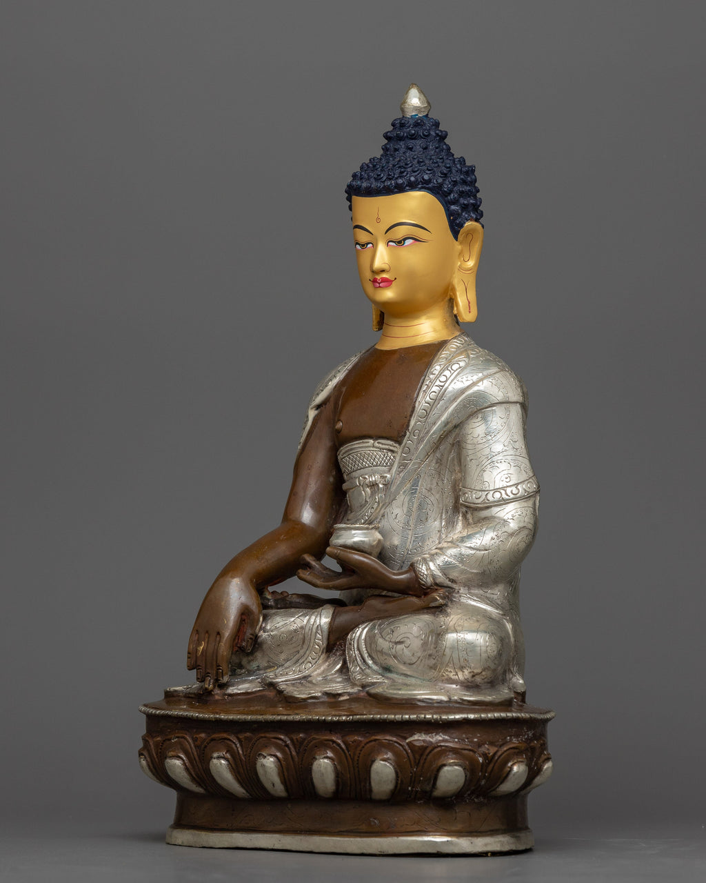 Elegant Reflection of Enlightenment, Shakyamuni Buddha Silver-Plated Statue