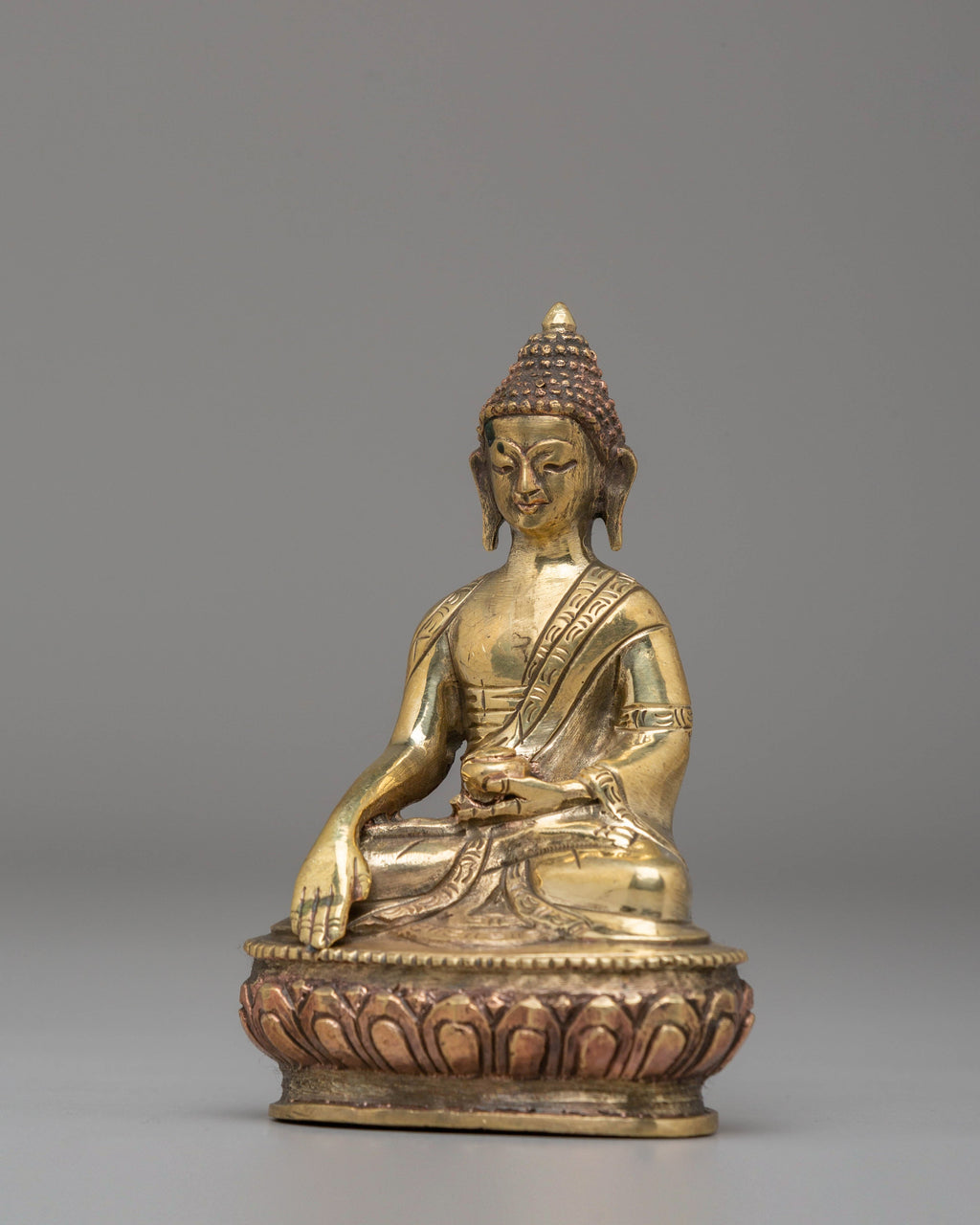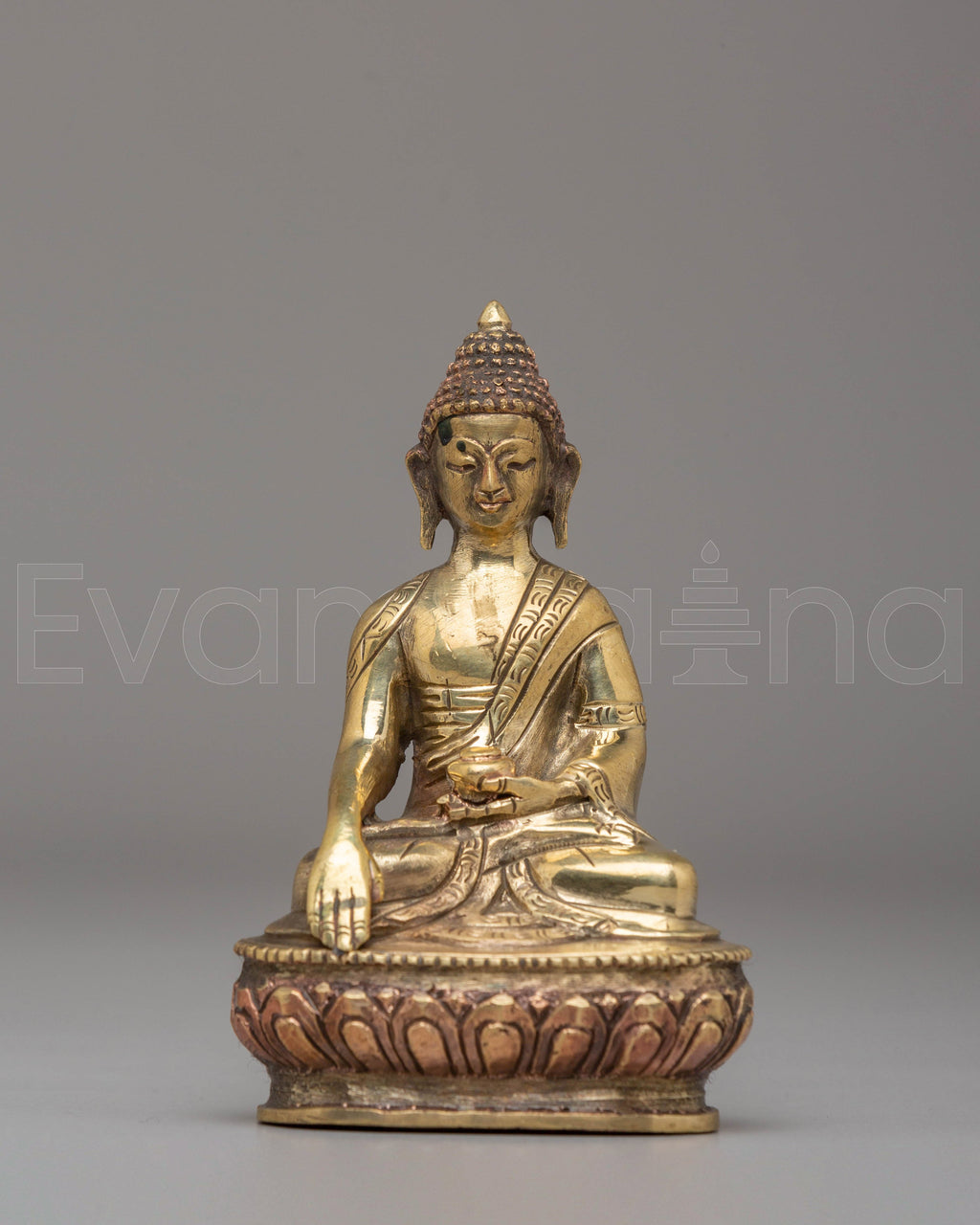 This Shakyamuni Buddha Spiritual Statue is a beautifully crafted representation of Siddhartha Gautama, the historical Buddha, depicted in a serene meditative pose. Standing at 10.5cm in height and 7cm in width, this statue is made from copper, reflecting a warm, spiritual energy that invites tranquility and inner peace into your space. The calm and peaceful expression on Shakyamuni Buddha’s face symbolizes the deep wisdom and compassion he embodies, offering a powerful presence for your meditation or altar practice.