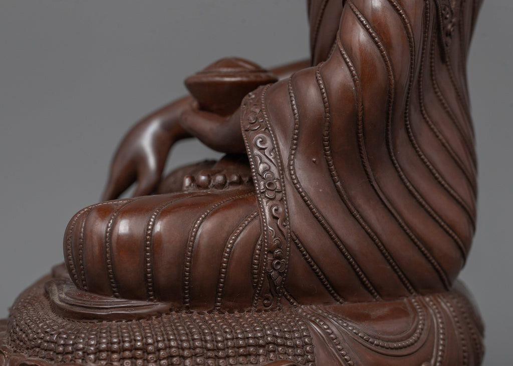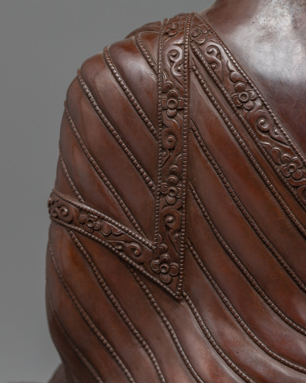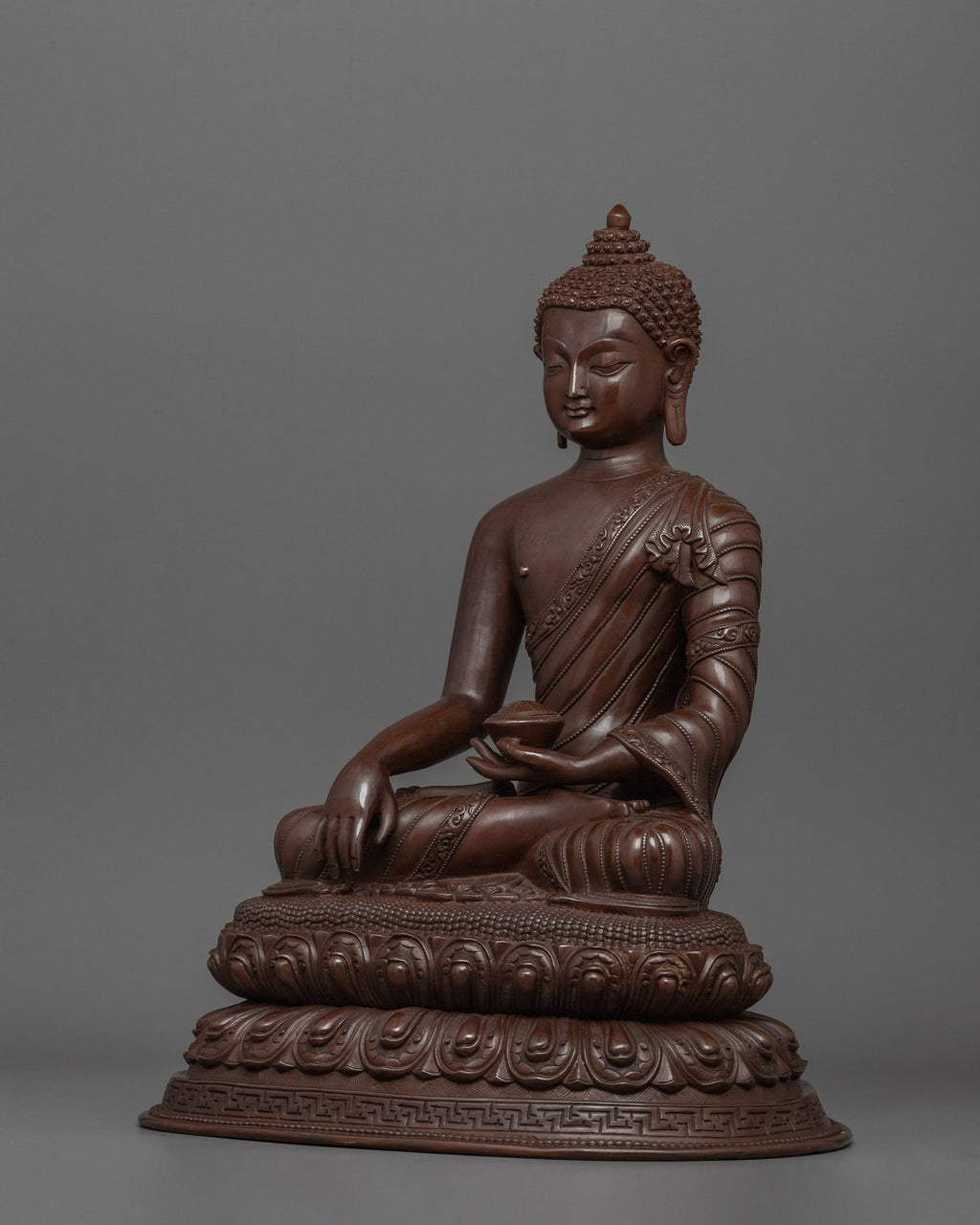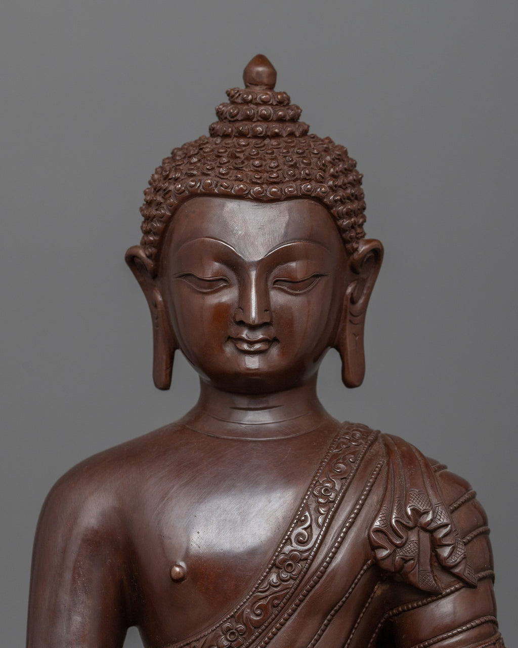 This Shakyamuni Buddha Statue for Spiritual Peace the essence of enlightenment and serenity. This handmade artwork, measuring 14" (Height) x 11.4" (Base) and weighing 4.79 kg, is made of oxidized copper and features a durable and sacred appearance. This scupture, which depicts the historical Buddha's teachings and journey to ultimate calm, serves as a powerful reminder of inner balance and spiritual enlightenment. It is an ideal complement to meditation places, altars, or holy collections, radiating a peaceful and profound spiritual energy.
