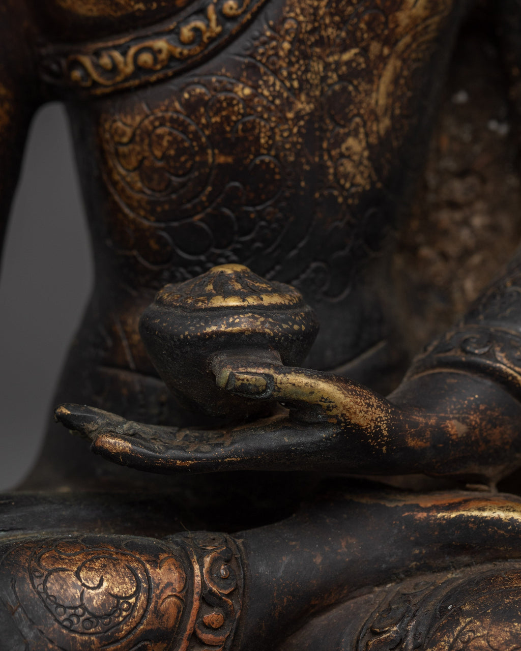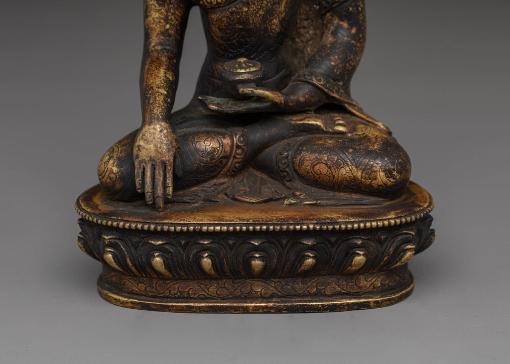 This Handmade Shakyamuni Buddha Copper Statue with an Oxidized Finish measures 9.3” (23.5 cm) in height and 5.9” (15 cm) at the base, weighing 1.32 kg. Crafted from copper and finished with an oxidized patina, this piece embodies traditional aesthetics and subdued elegance. Expertly handcrafted by skilled Nepali artisans, it is ideal for altars, meditation spaces, or as a thoughtful spiritual decor item.