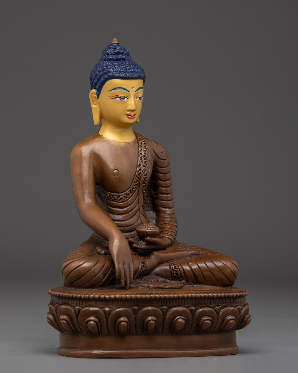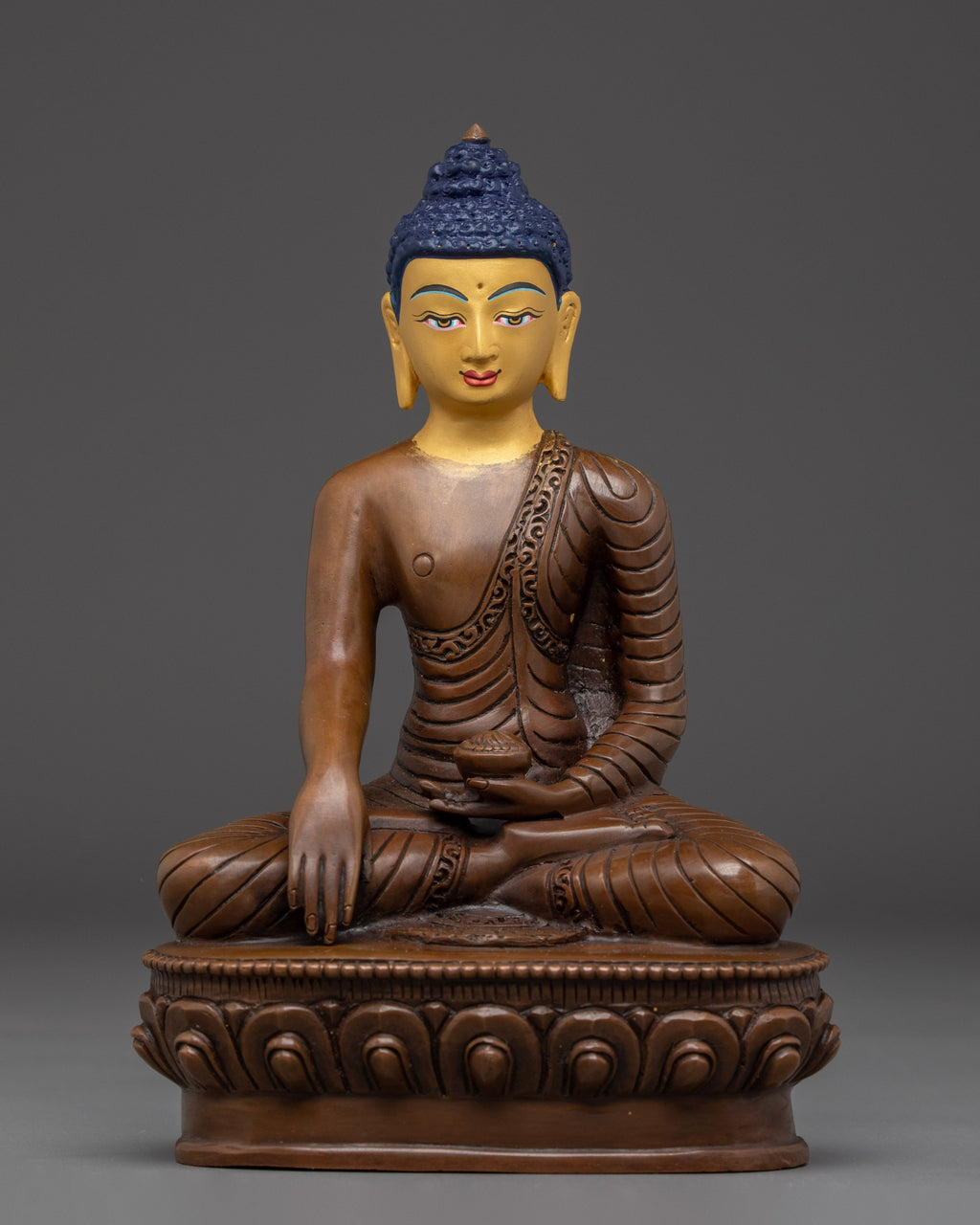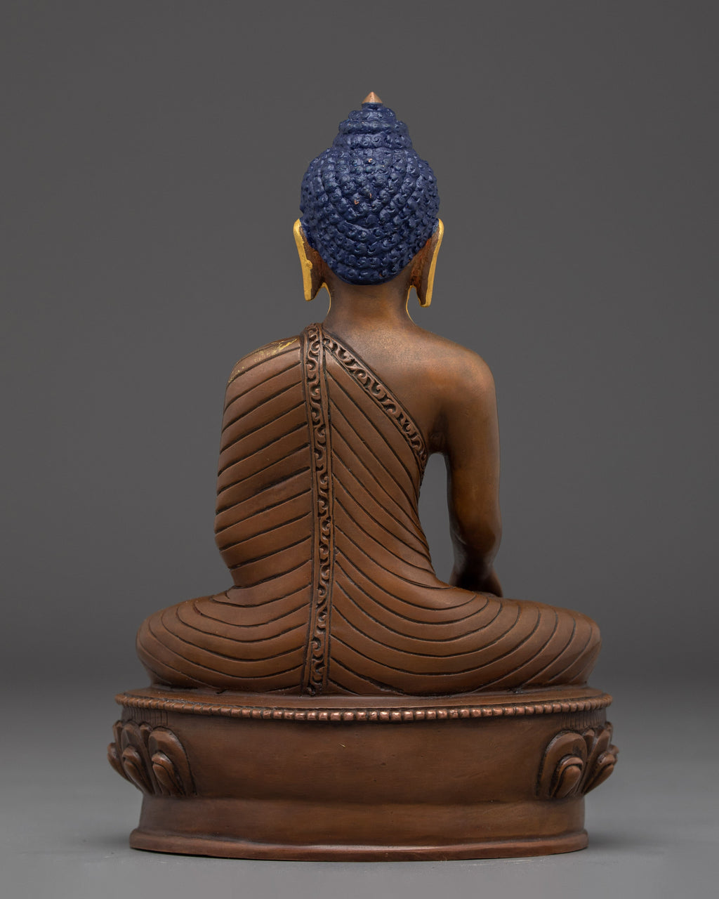 This Shakyamuni Dharma Teacher Statue is a beautifully detailed figurine crafted from oxidized copper, symbolizing the teachings of Shakyamuni Buddha, the historical Buddha. Standing at 18cm in height and 12cm in width, this statue carries a serene presence, perfect for creating a peaceful atmosphere in any meditation or living space. Weighing 0.93kg, it reflects the depth of spiritual wisdom it represents.