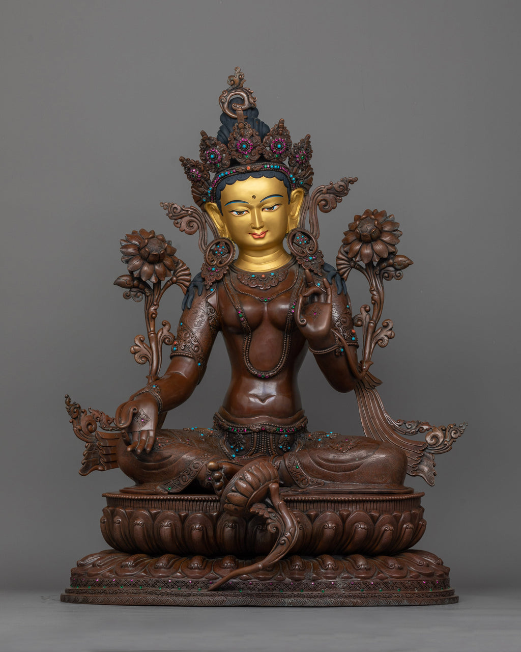 Invoke Protection and Healing with Our Shri Green Tara Oxidized Statue