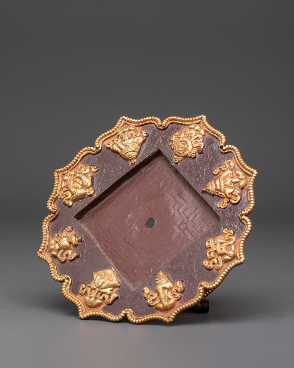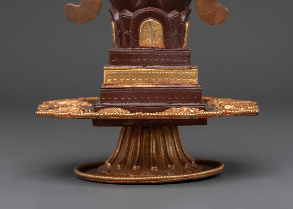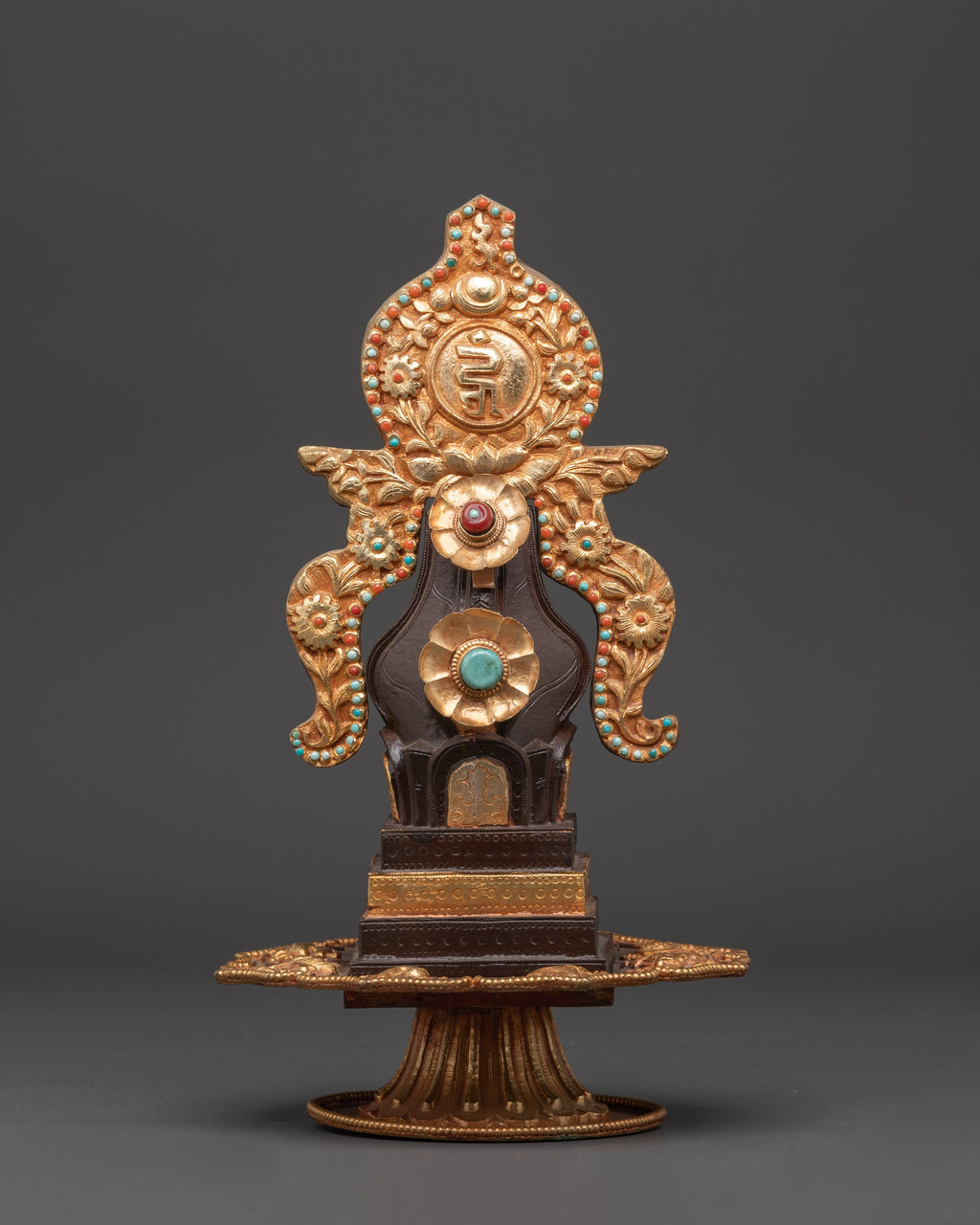 Elevate your spiritual practice with this exquisitely handcrafted Shrine Torma, a sacred artifact designed with meticulous precision and deep reverence. Measuring 28.5 cm in height and 16 cm in width, it is crafted from copper and enhanced with a gold plating that adds timeless elegance. The vibrant turquoise and artificial coral stones not only enrich their visual appeal but also carry profound spiritual symbolism, enhancing the power of your offerings. Essential for Tibetan rituals and spiritual ceremonies, this Shrine Torma serves as a meaningful vessel for offerings to deities, helping deepen your connection during prayers and sacred rites. Its presence brings both beauty and spiritual significance to your altar, making it an indispensable addition to your practice.