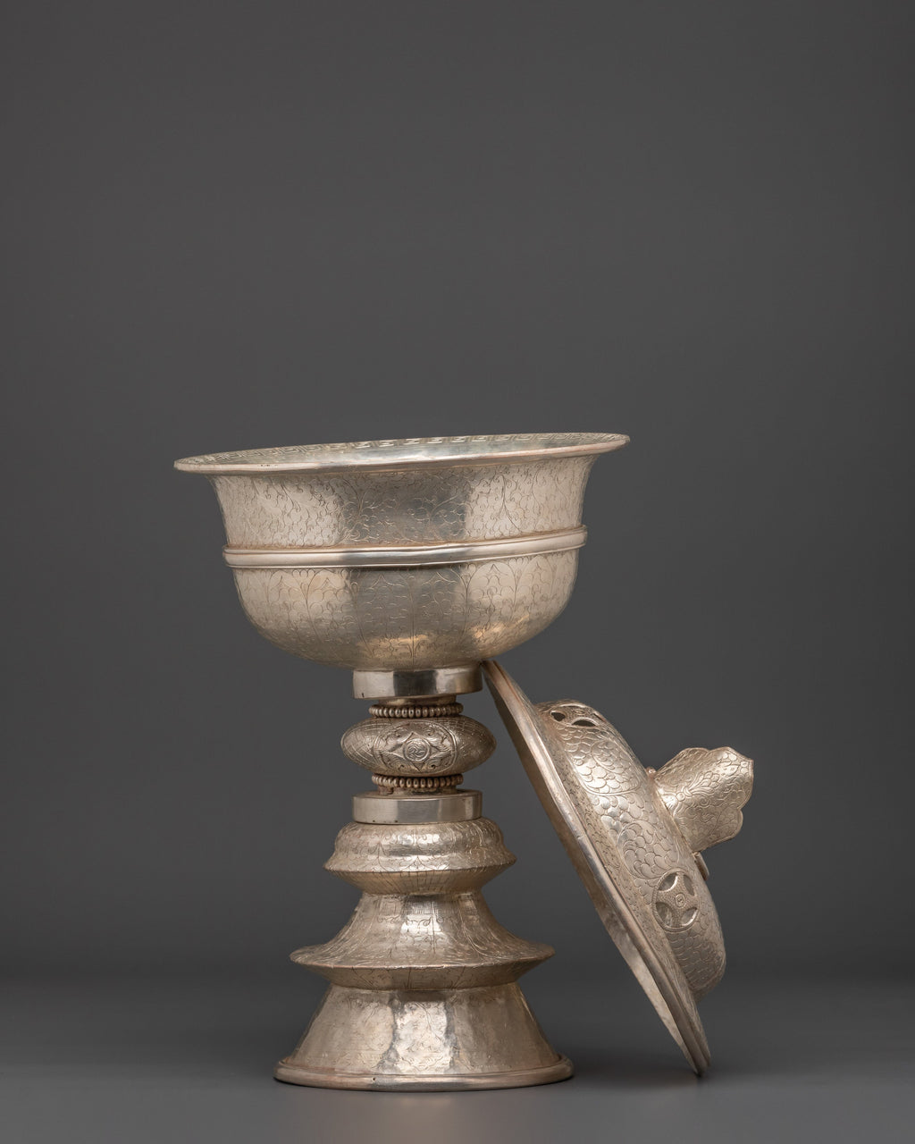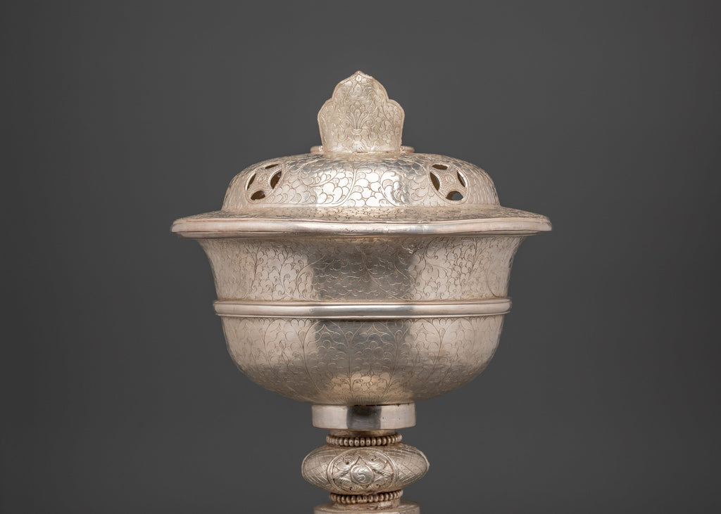 Handcrafted Silver Coated Butter Lamp | Spiritual Offering Vessel