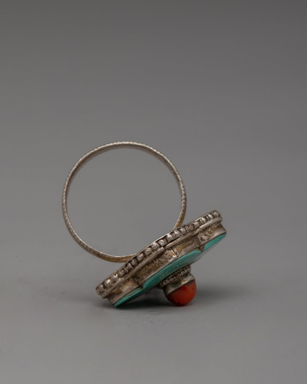 Traditional workmanship and fashionable boho style can be observed in the band's careful detailing and the blend of natural stones. This ring is a stunning addition to your jewelry collection or an elegant present that symbolizes handmade excellence and eternal beauty.