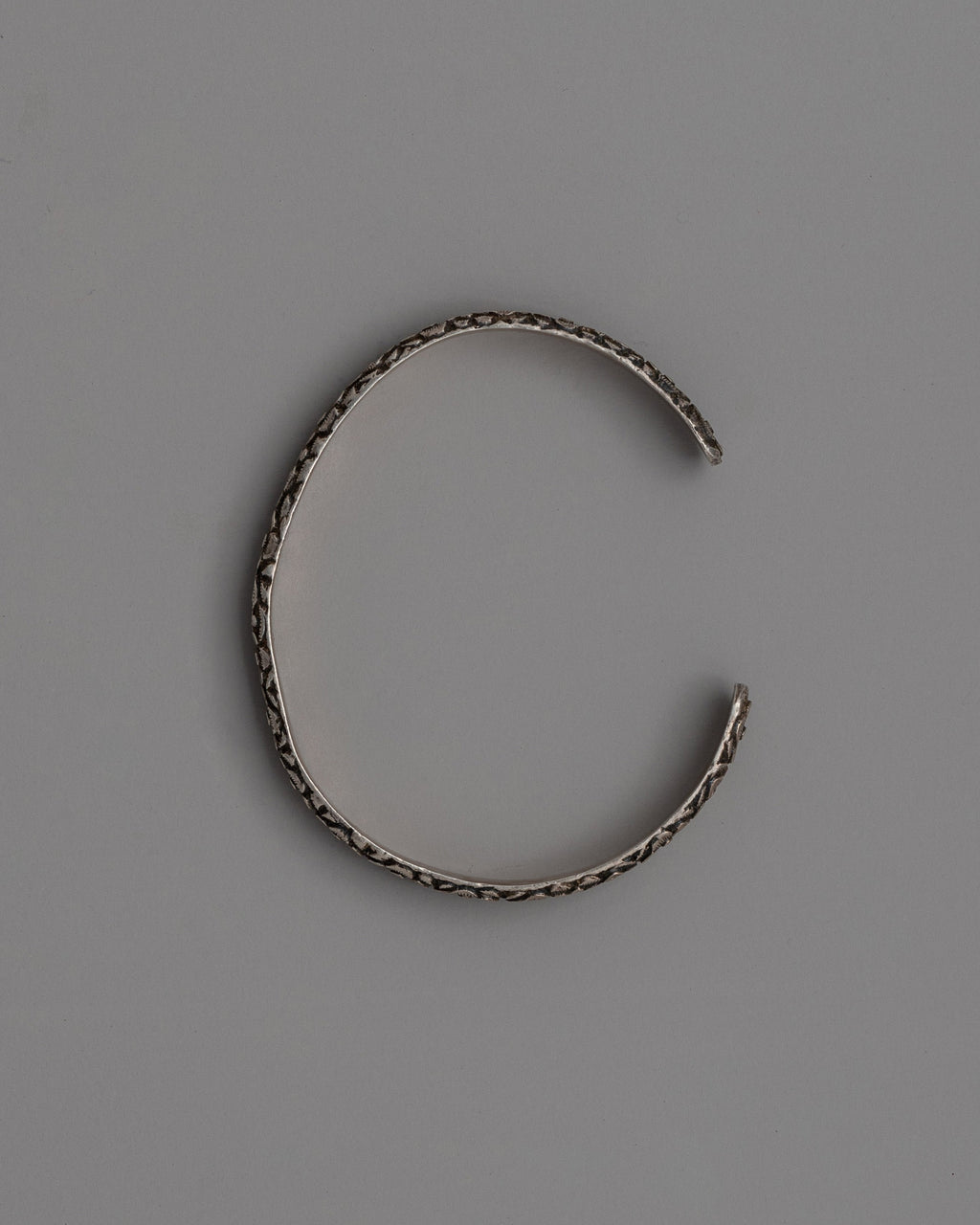 This bracelet, handcrafted from 18K silver, représente fine artistry and careful attention to detail. Its refined, simple appeal is enhanced by its slim dimensions of 1 cm height and 7.5 cm width. This bracelet affords an elegant touch that embodies beauty and grace, whether you're ensuring a thoughtful present or an eternal item for yourself.