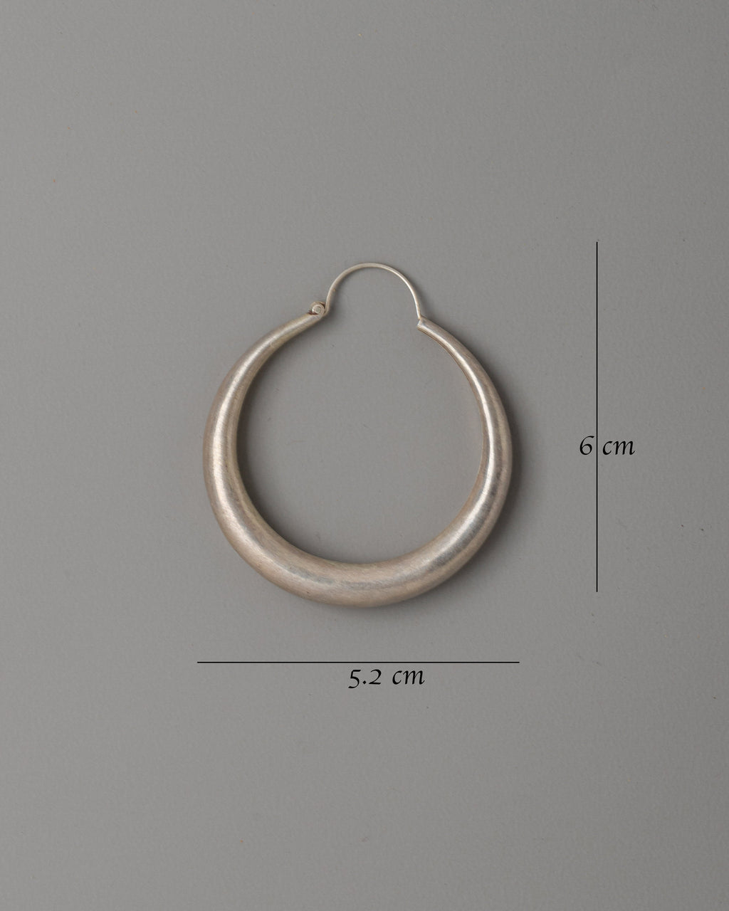 These handmade Tibetan Silver Hoop Earrings will add a touch of traditional elegance to your jewelry collection. These lightweight, comfortable, and stylish earrings are made of 92.5% silver and are perfect for special occasions and everyday wear. Their simple hoop form ensures versatility and free elegance. Measuring 6 cm in height and 5.2 cm in width, each earring weighs only 0.004 kg (a total weight of 0.008 kg).