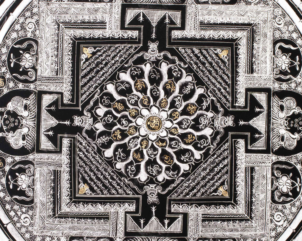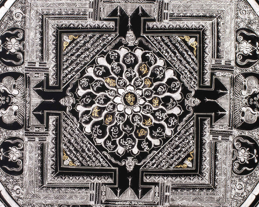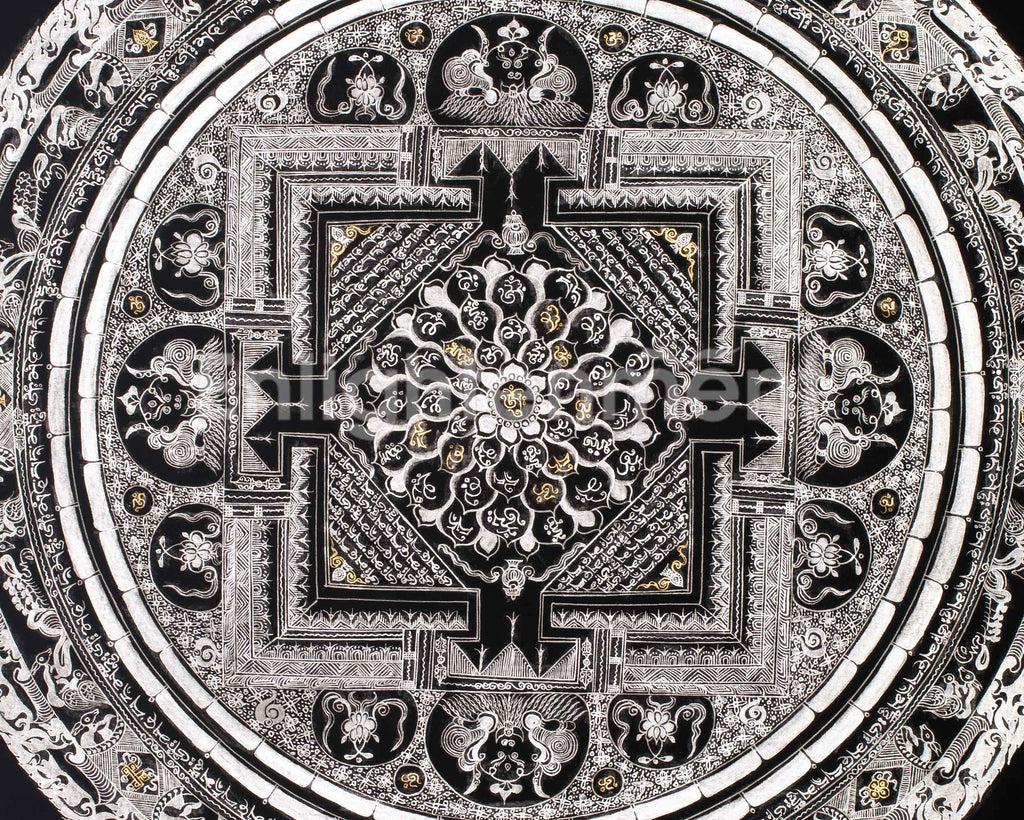 Sacred Silver Mantra Mandala Painting | High-Quality Om Mani Padme Hum Mandala