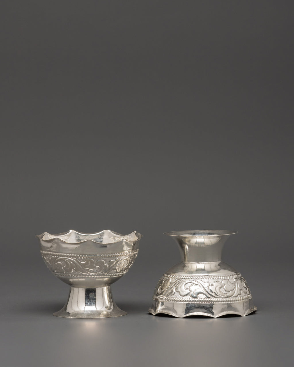 Pure Silver Offering Bowl Set for Ritual Ceremonies | Handcrafted Bowl Set Sacred Buddhist Decor
