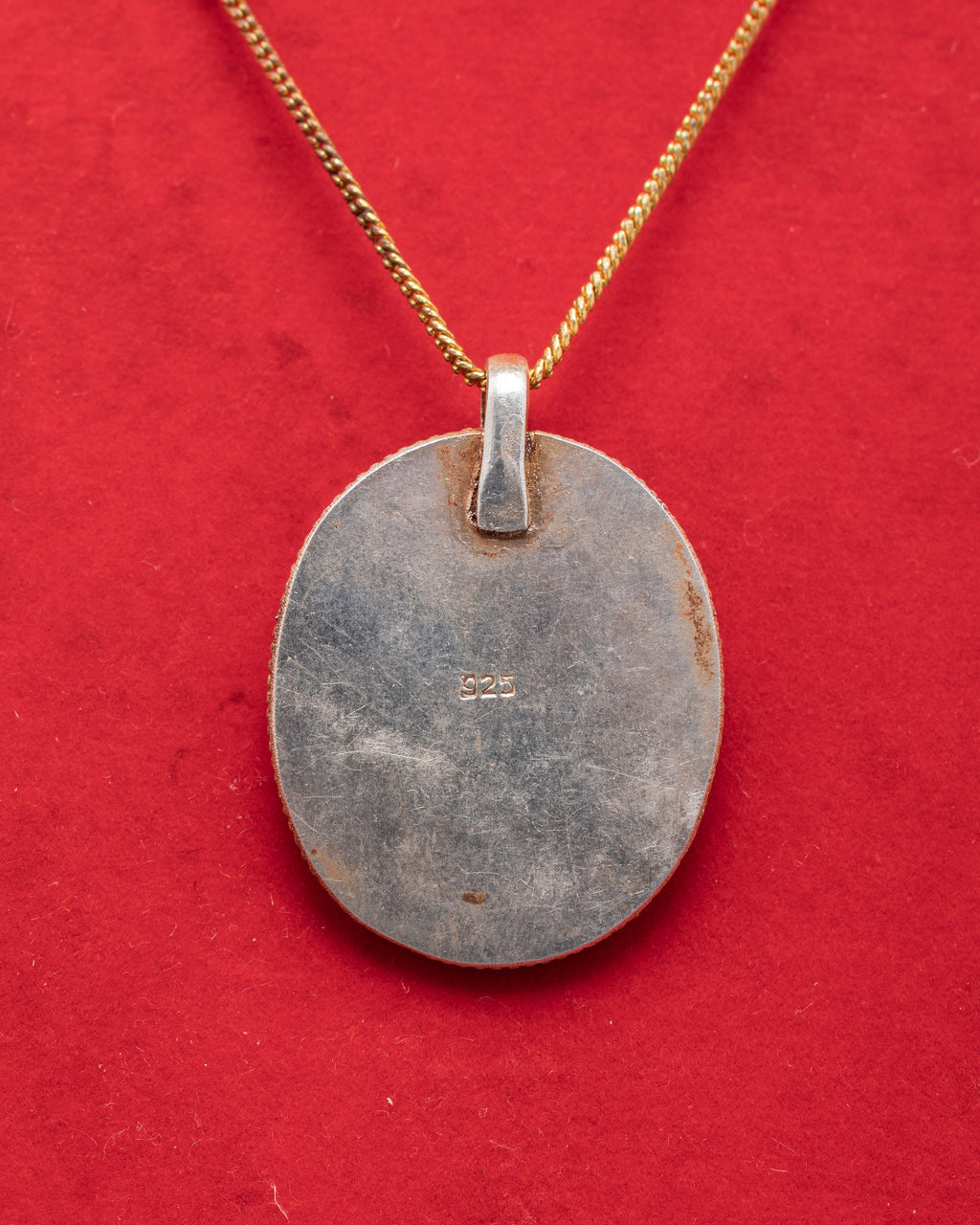Handcrafted with great care, this Silver Pendant is the perfect choice for someone who values unique, handmade jewelry with rich artistic expression. The gold-plated accents provide a refined touch that enhances the design, making it an exquisite addition to any collection. Whether paired with traditional or modern attire, this pendant will stand out, adding a vibrant touch to any outfit.