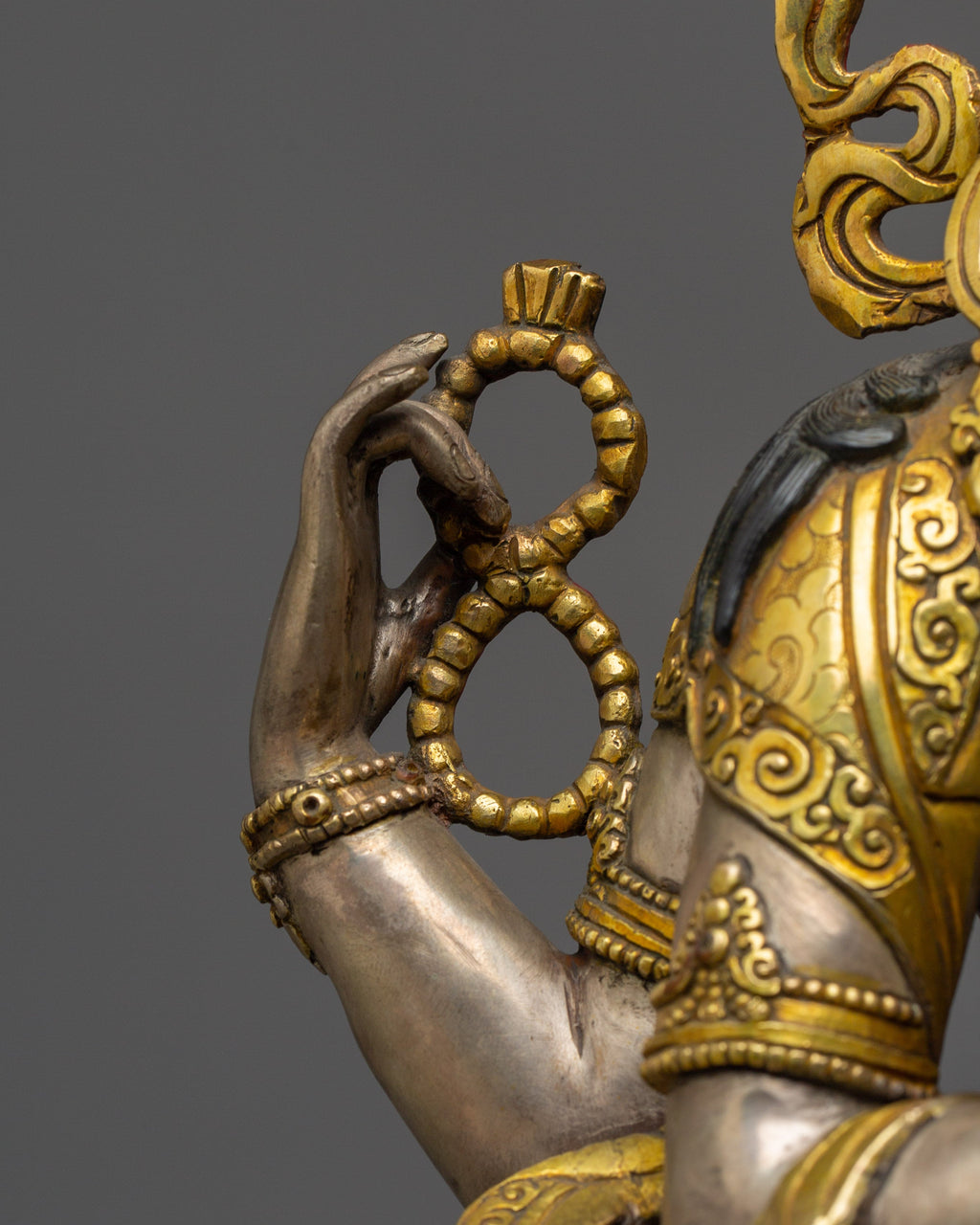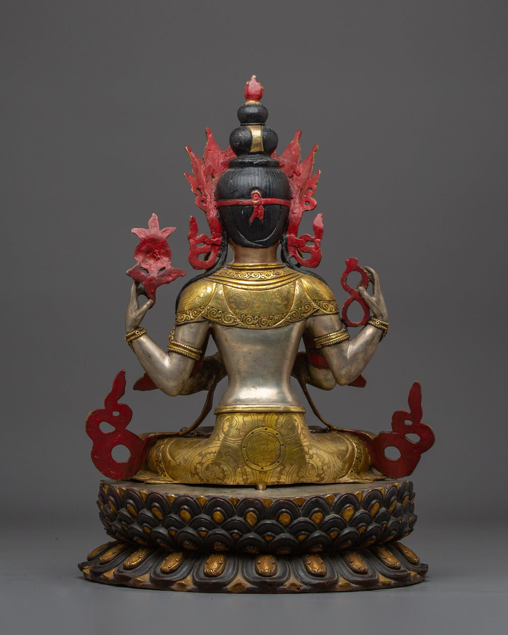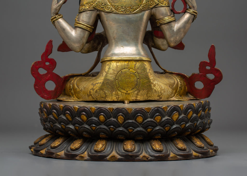 Silver-Plated & Gold-Gilded Copper Chenrezig Statue | Four-Armed Avalokiteshvara
